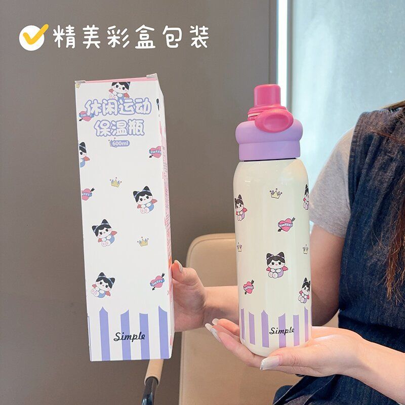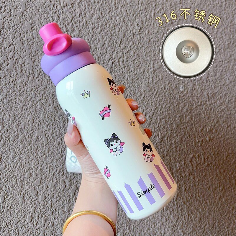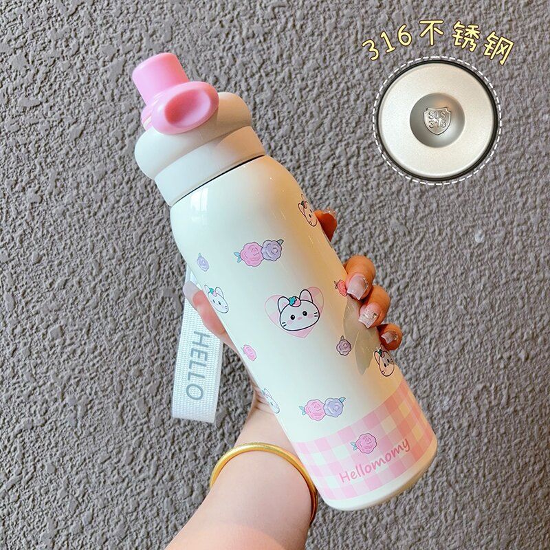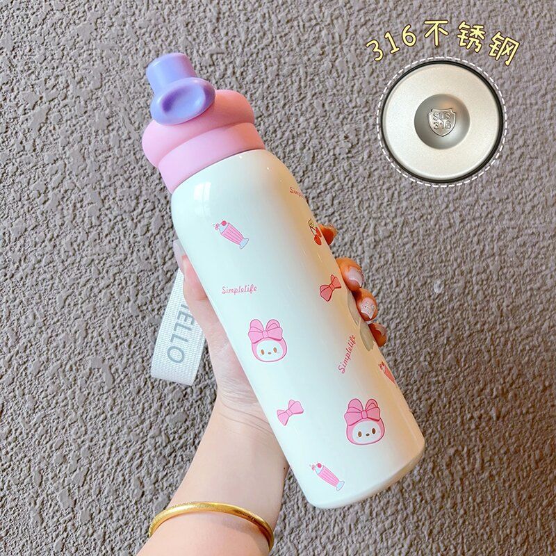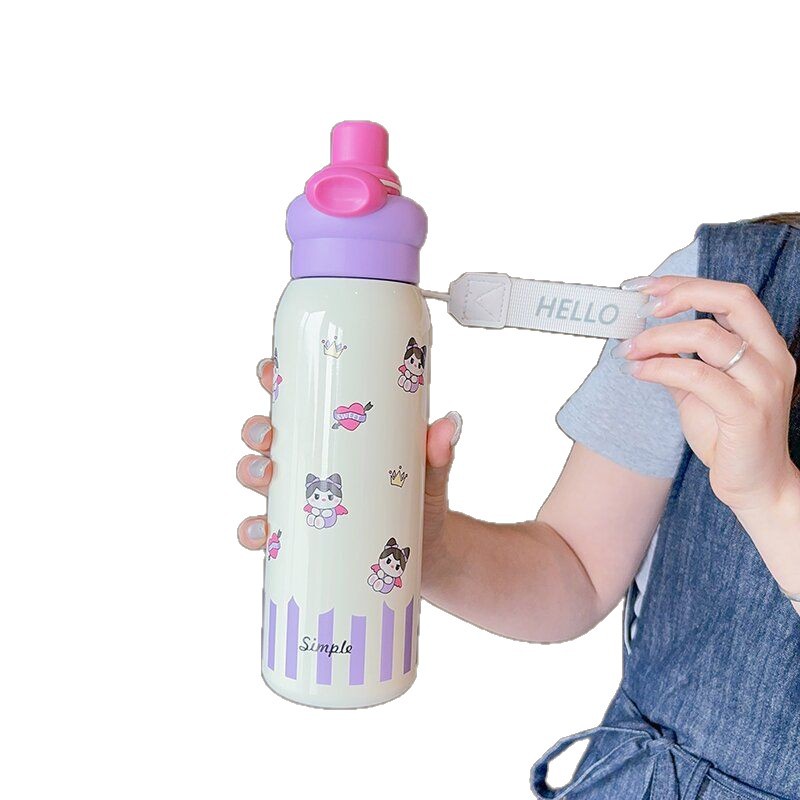 thermal insulation cup for girls 2025 new cute double drinking cup large capacity rope holding straw cup hand gift cup