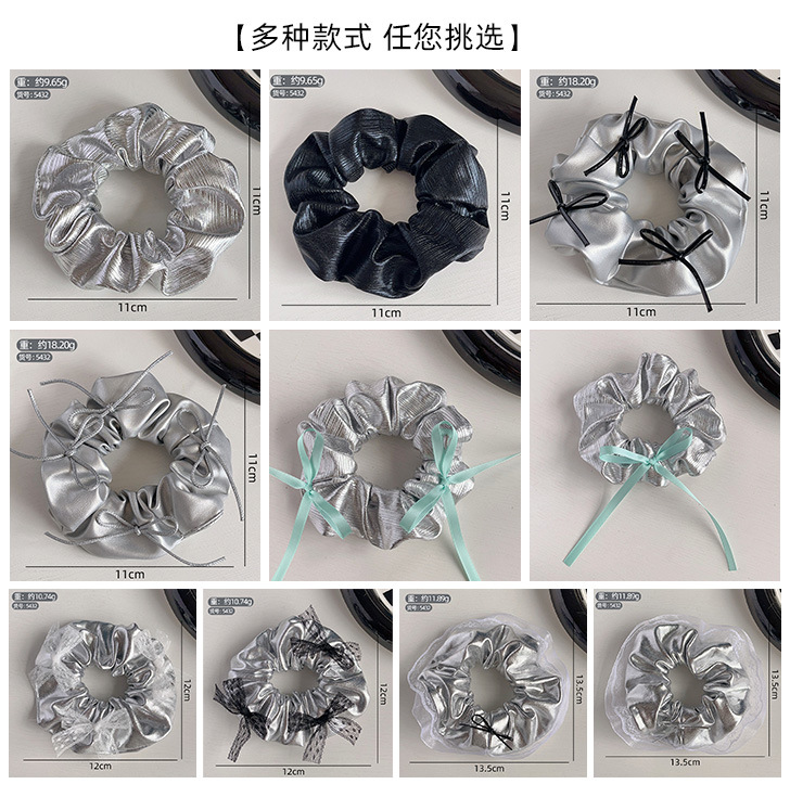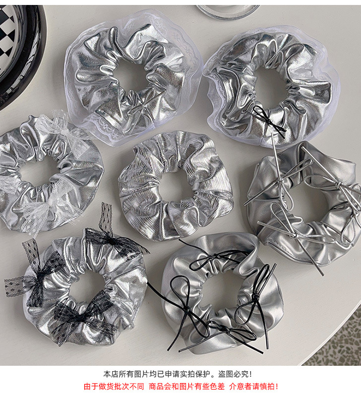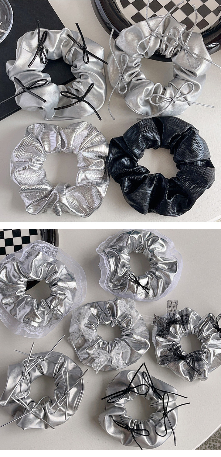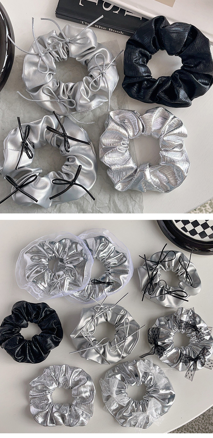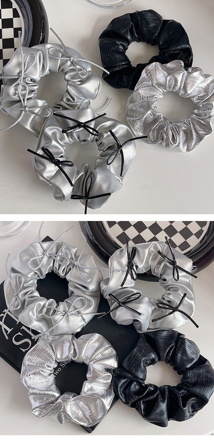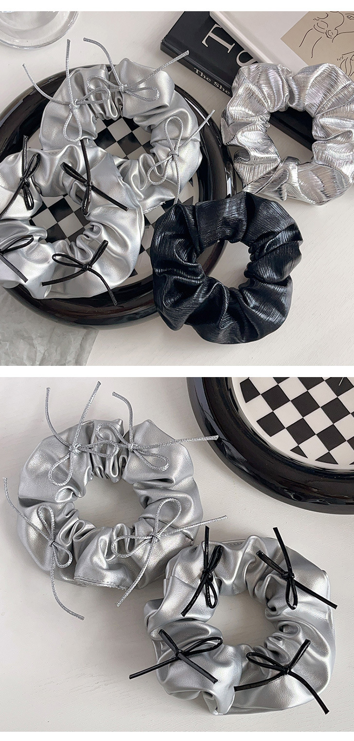 silver leather silver bowknot hair ring