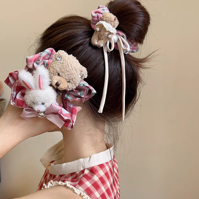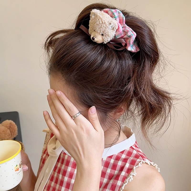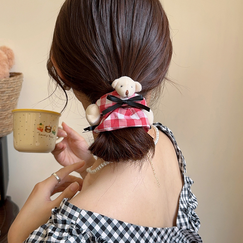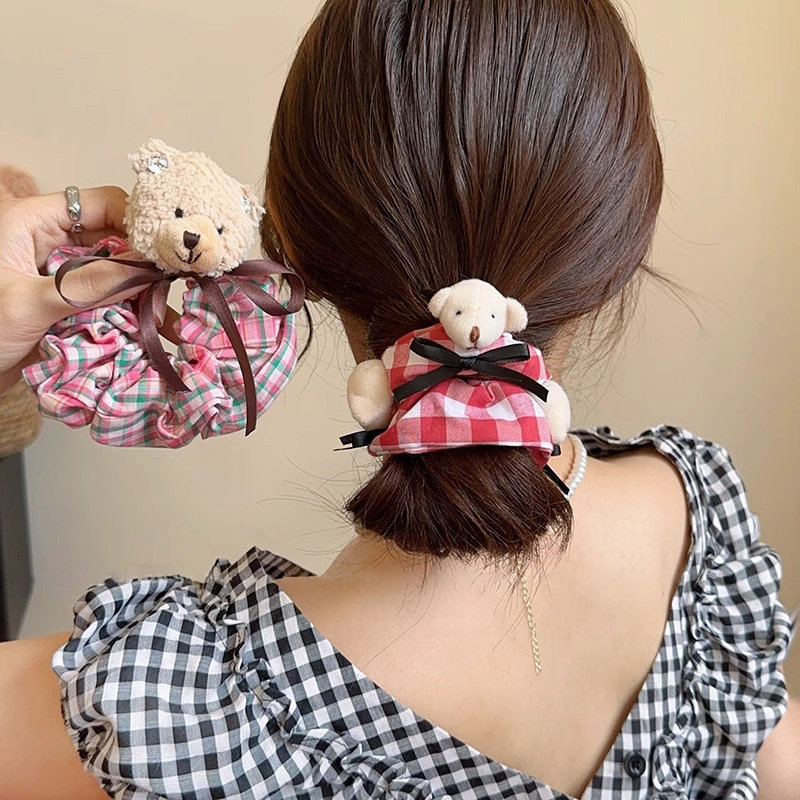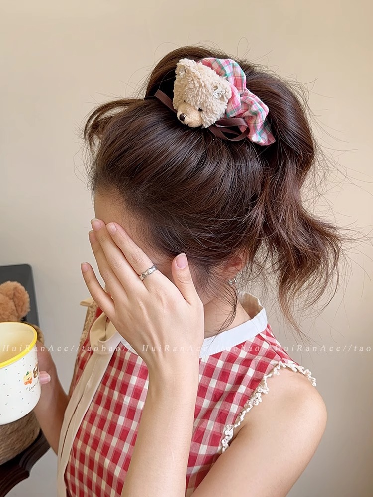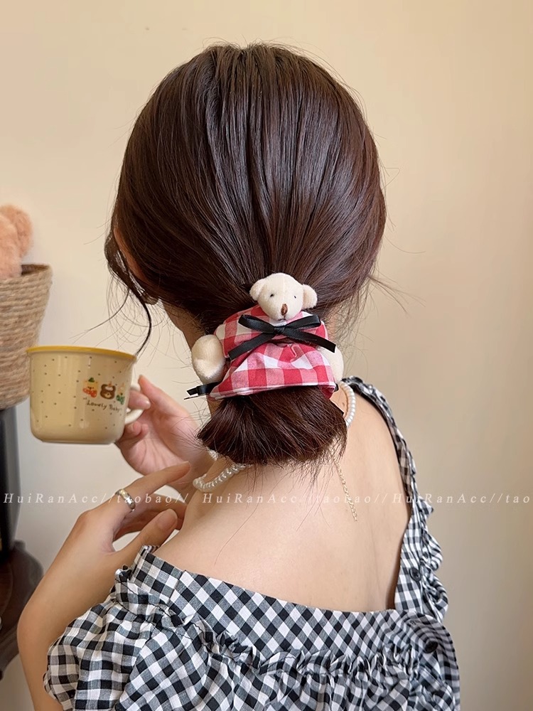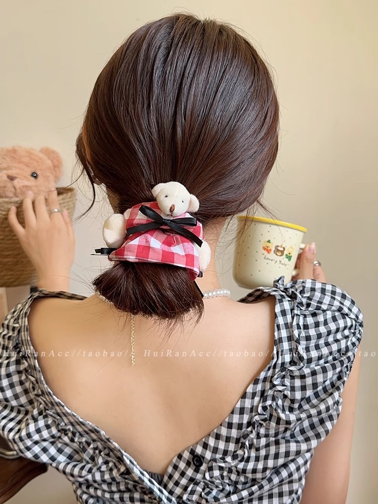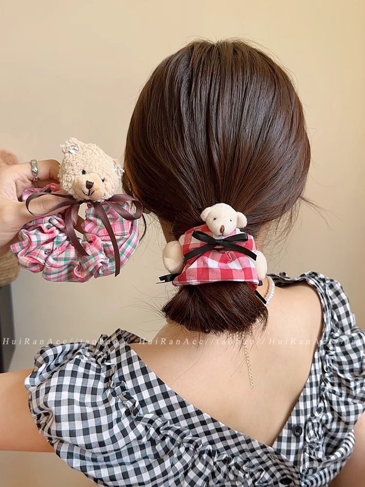 bear red plaid bear hair ring