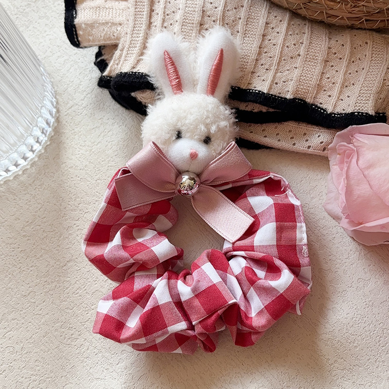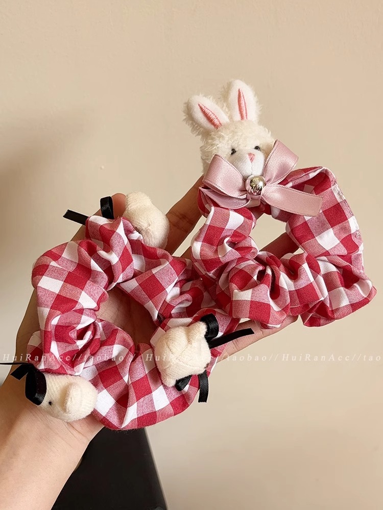red plaid rabbit scrunchies