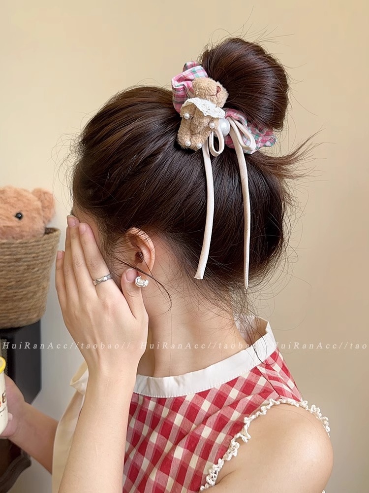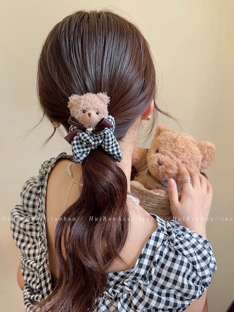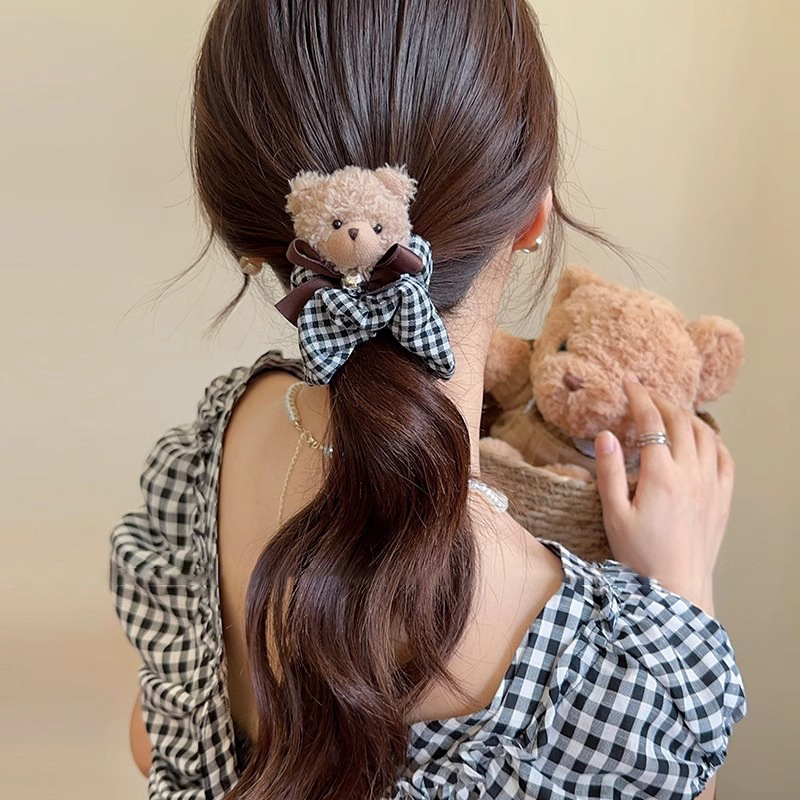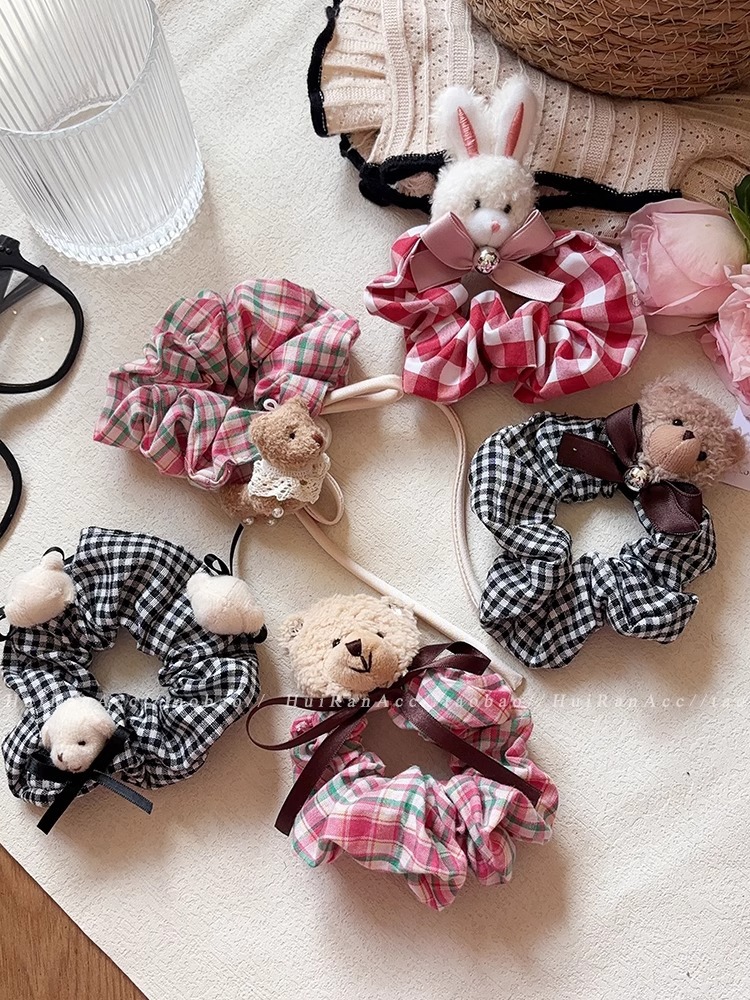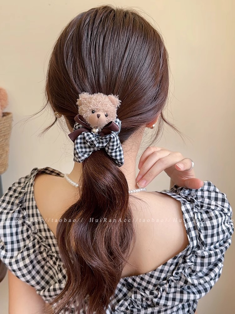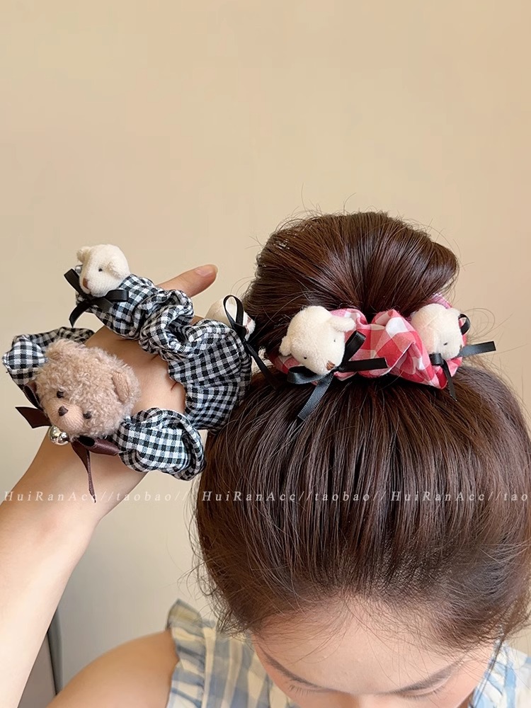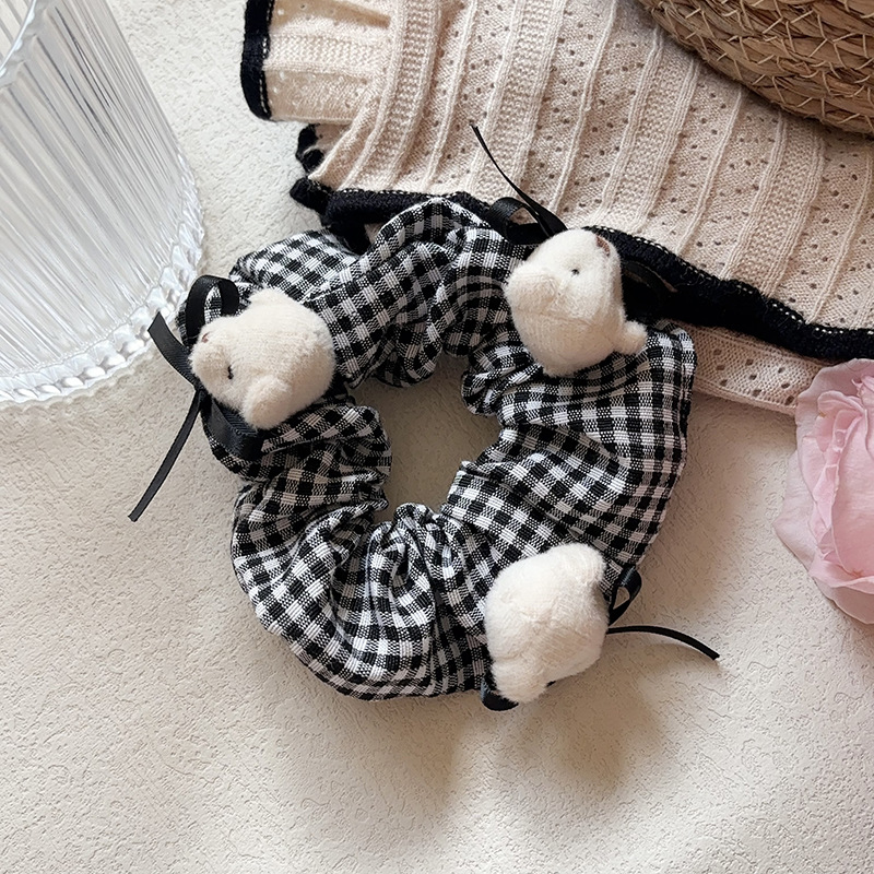 black plaid bear hair ring