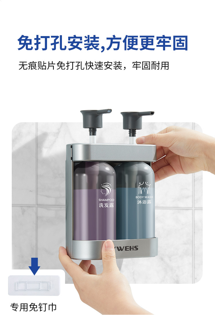 homestay hotel manual soap dispenser bracket wall-mounted punch-free double-headed press shampoo subpackaging device shampoo