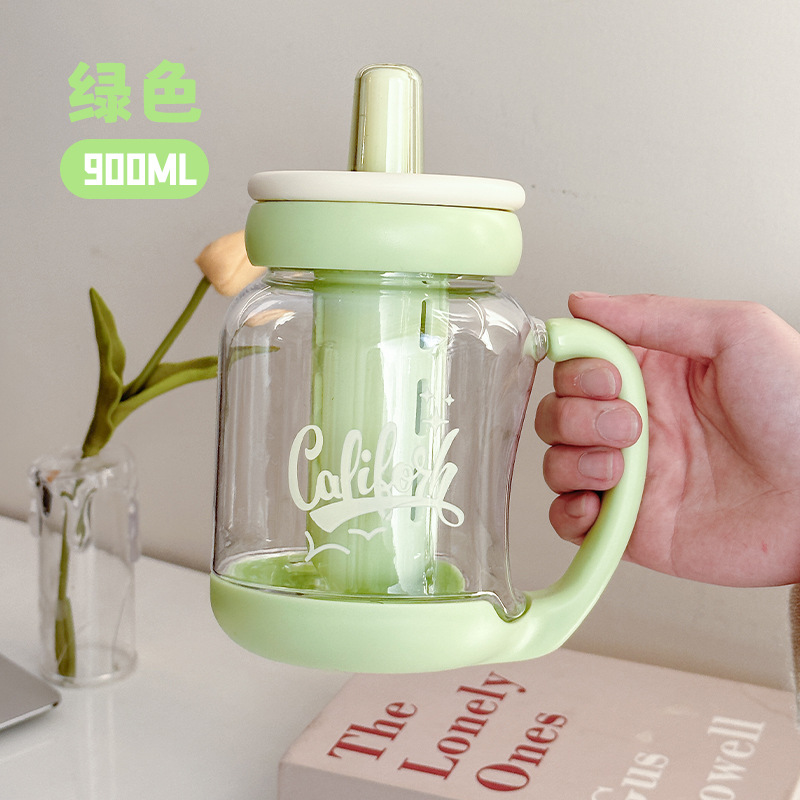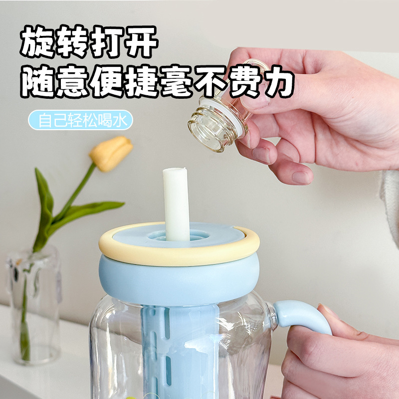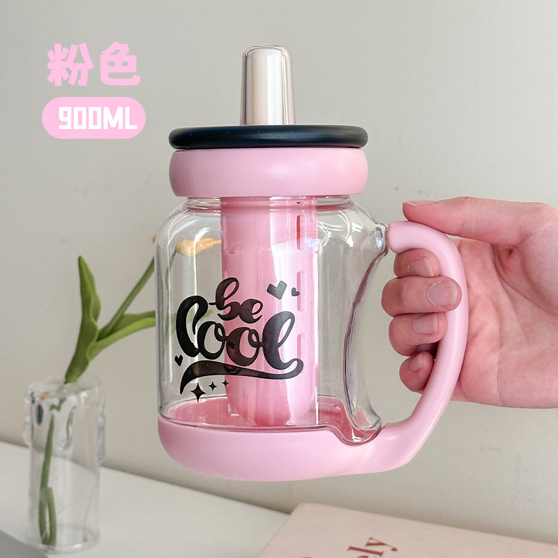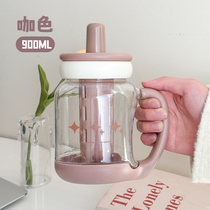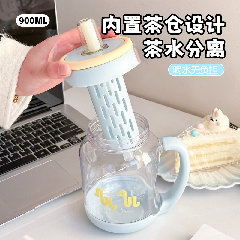 simple large capacity straw plastic cup boys and girls tea water separation water cup with handle office cup