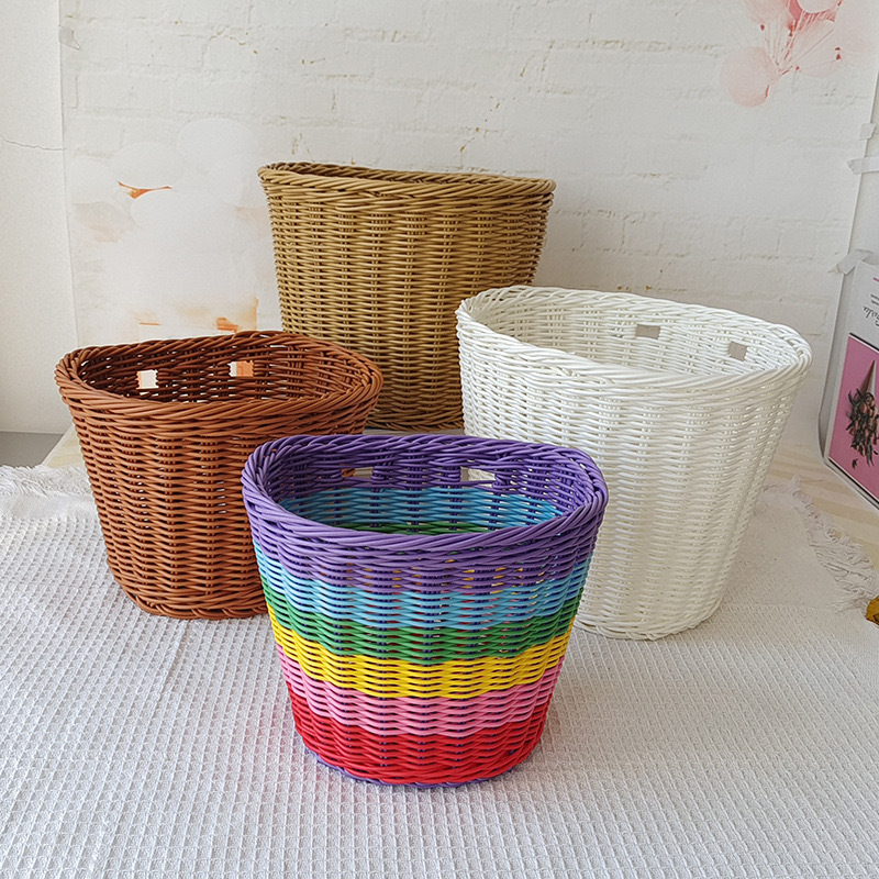 rainbow color woven bicycle basket