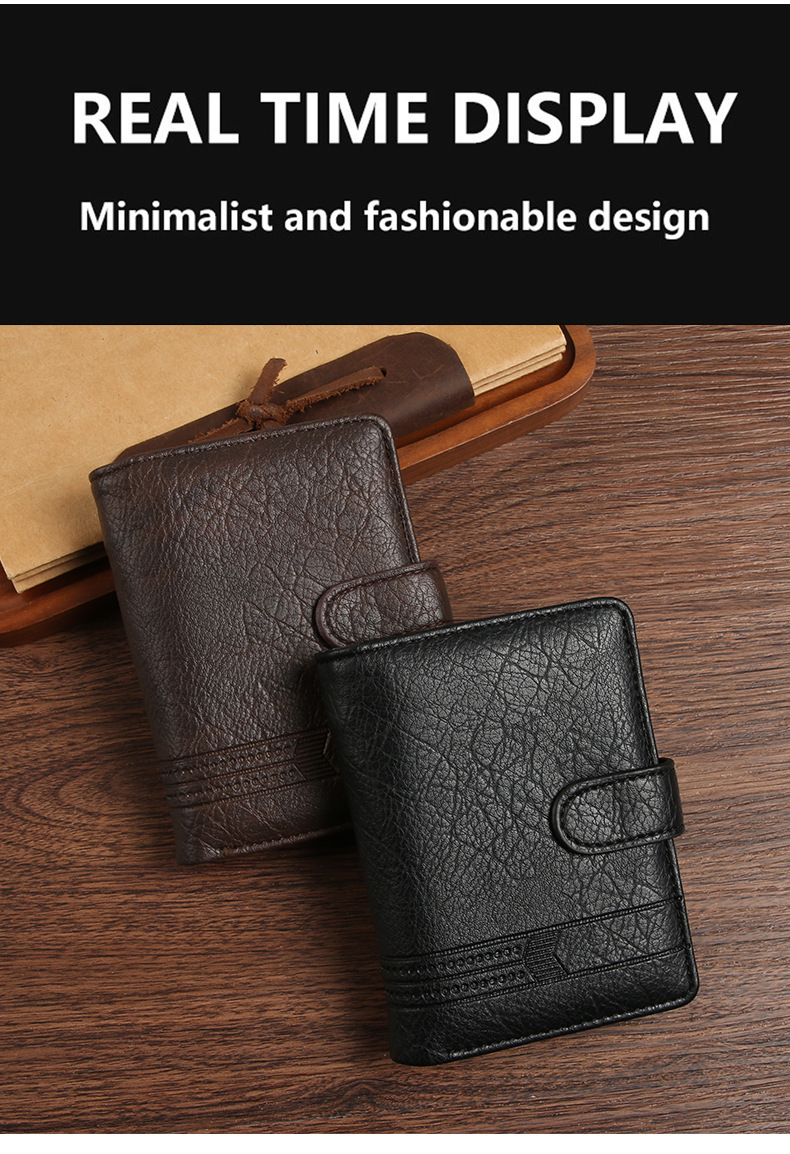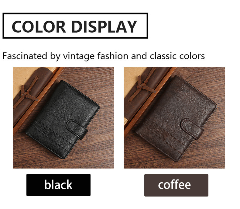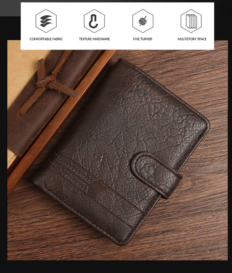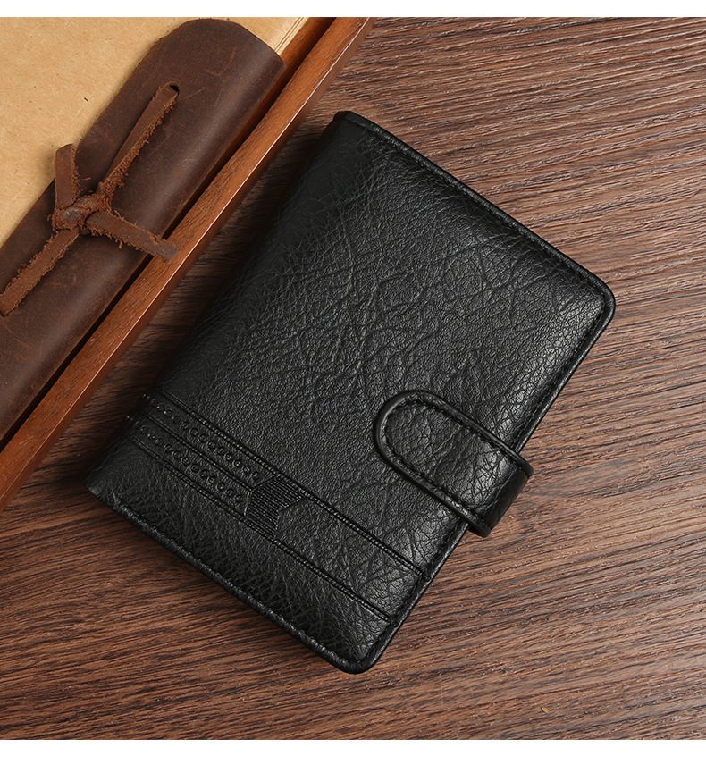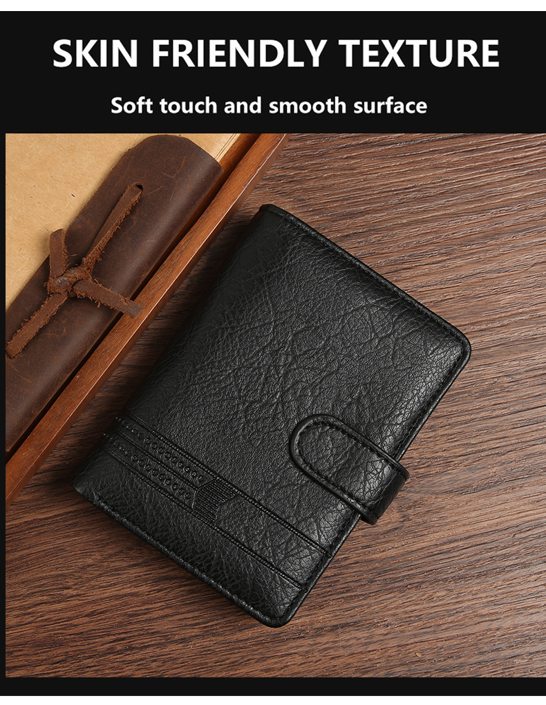 Wholesale factory new men's wallet PU leather vertical foreign trade cross-border buckle business retro multi-card position wallet