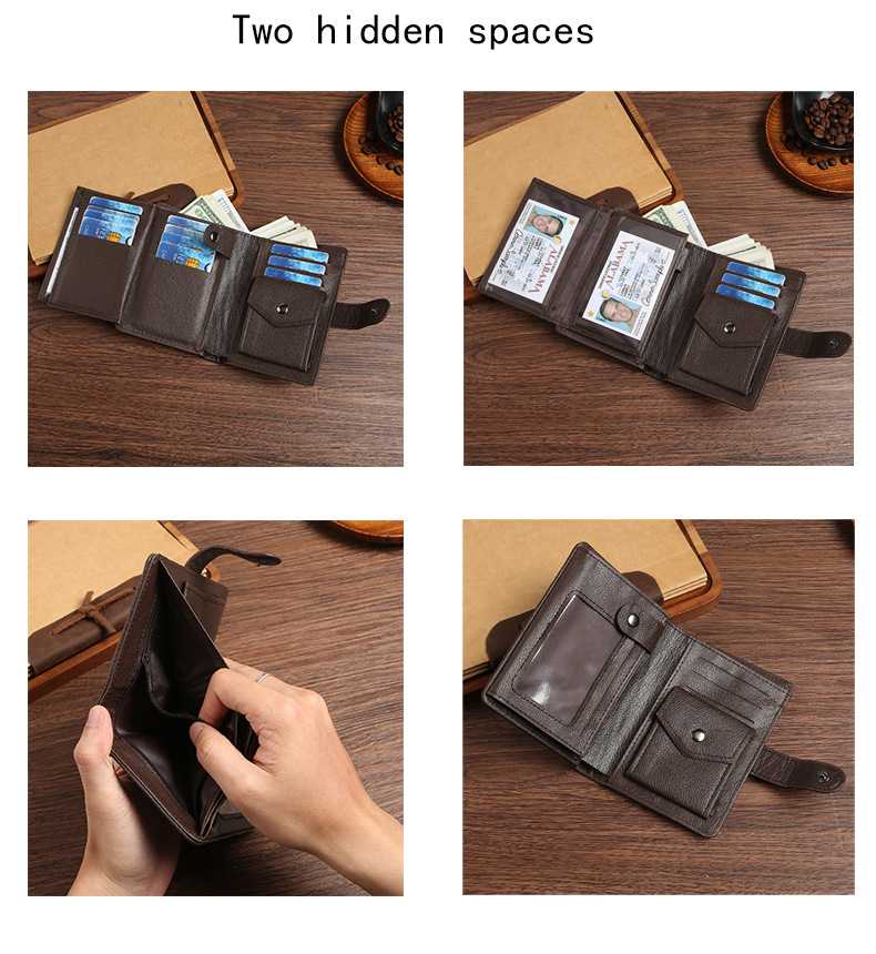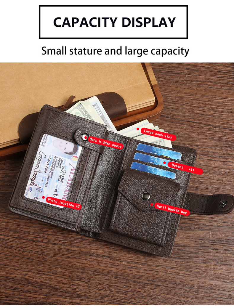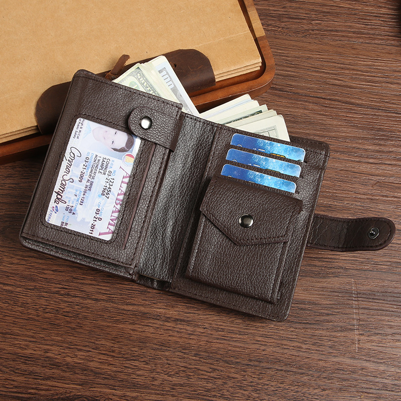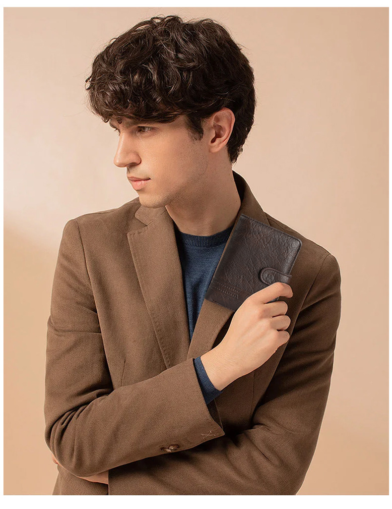 Wholesale factory new men's wallet PU leather vertical foreign trade cross-border buckle business retro multi-card position wallet