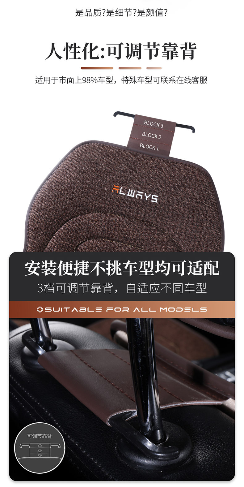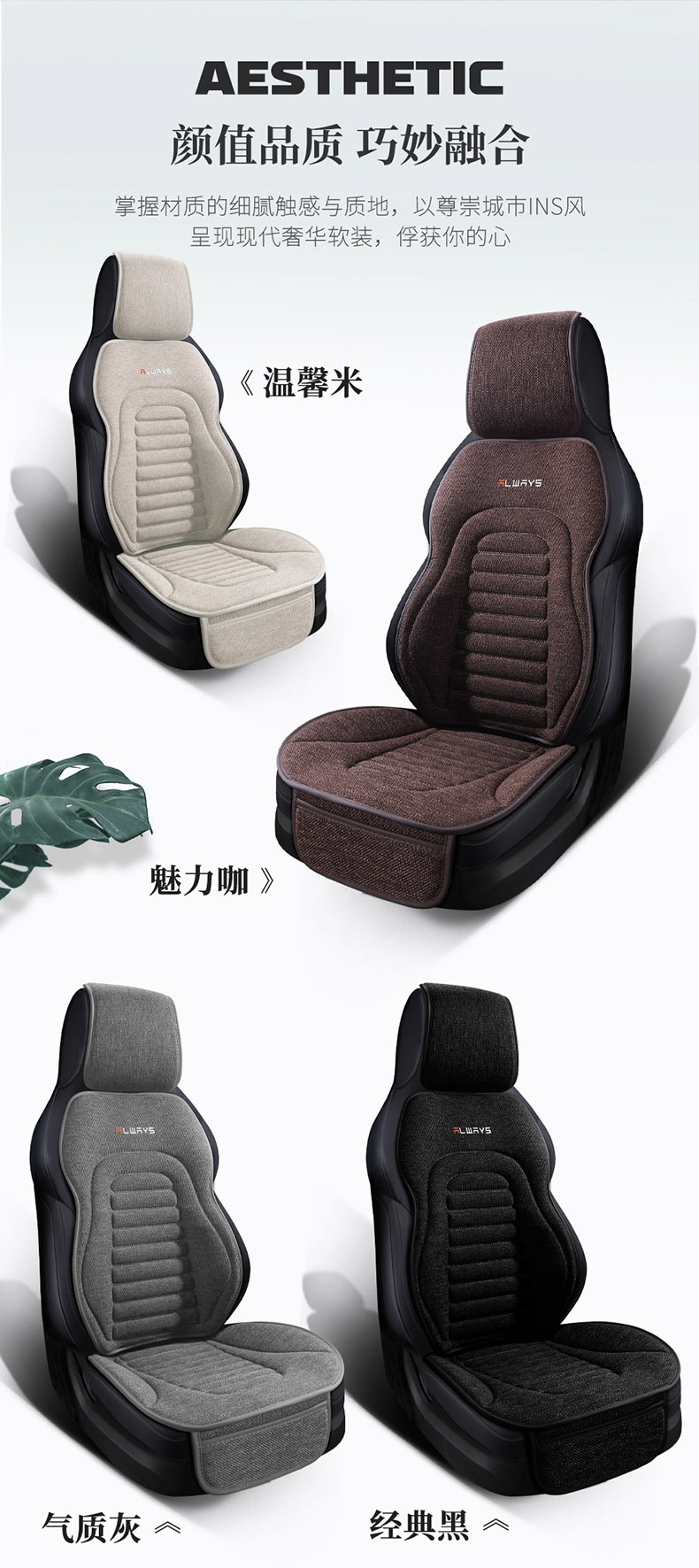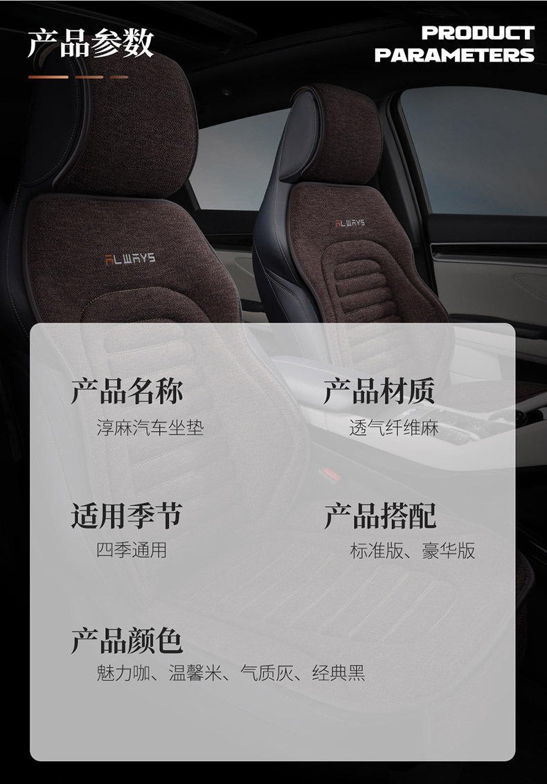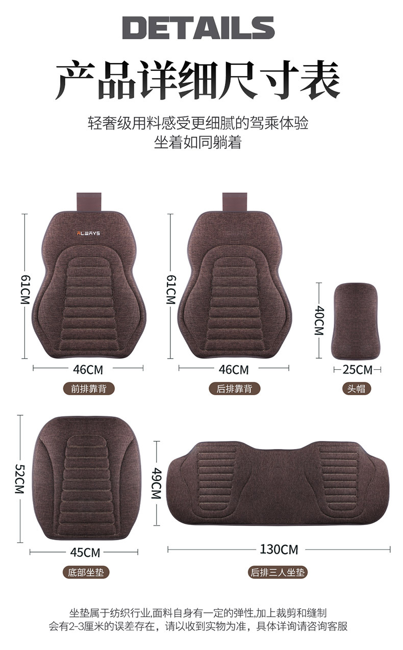 Standard version: 5 seat cushions + 2 headrests + 2 lumbar supports