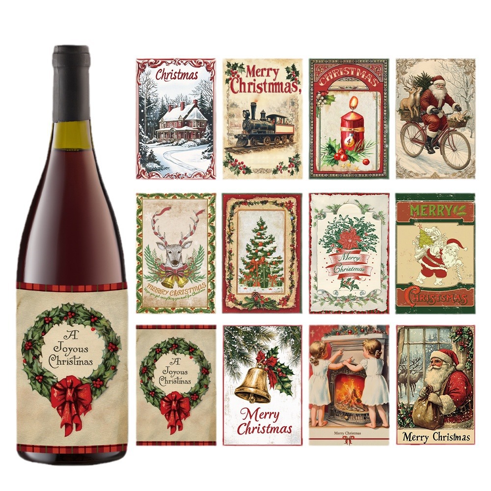 Series: Christmas Decorative Vintage Wine Bottle Stickers Party Supplies