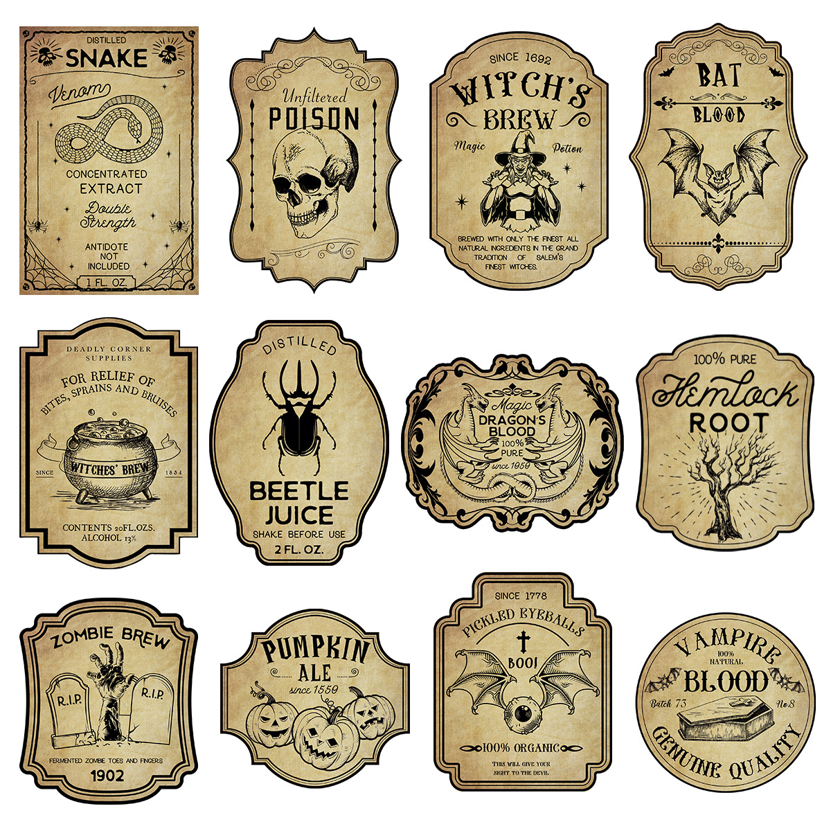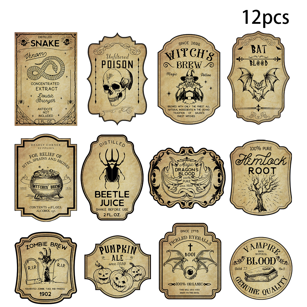 Series: 2024 Amazon Cross-border New Halloween Decorations Vintage Non-adhesive Odd-shaped Red Wine Bottle Labels Scenic Arrangement Prop Party Supplies