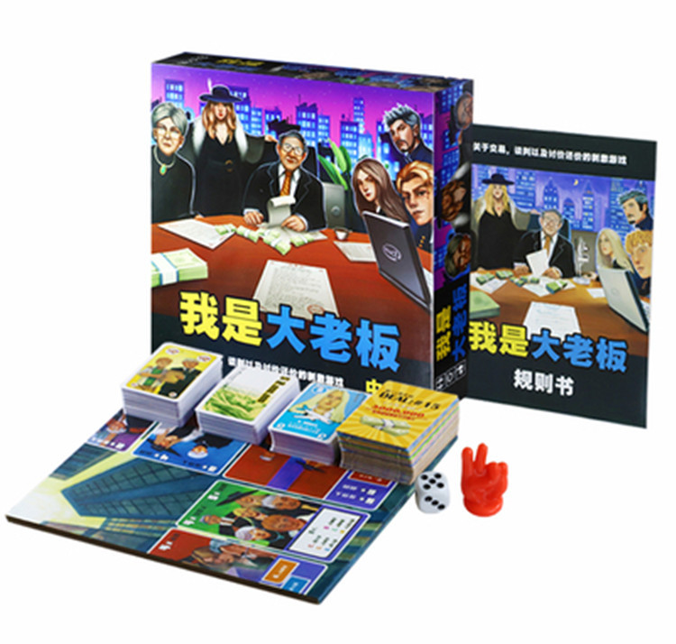 1 game board, 6 Capitalist cards, 98 Influence cards (including 24 different clan cards of different financial groups, 21 travel cards, 33 recruitment cards, 10 CEO cards, and 10 stop cards).