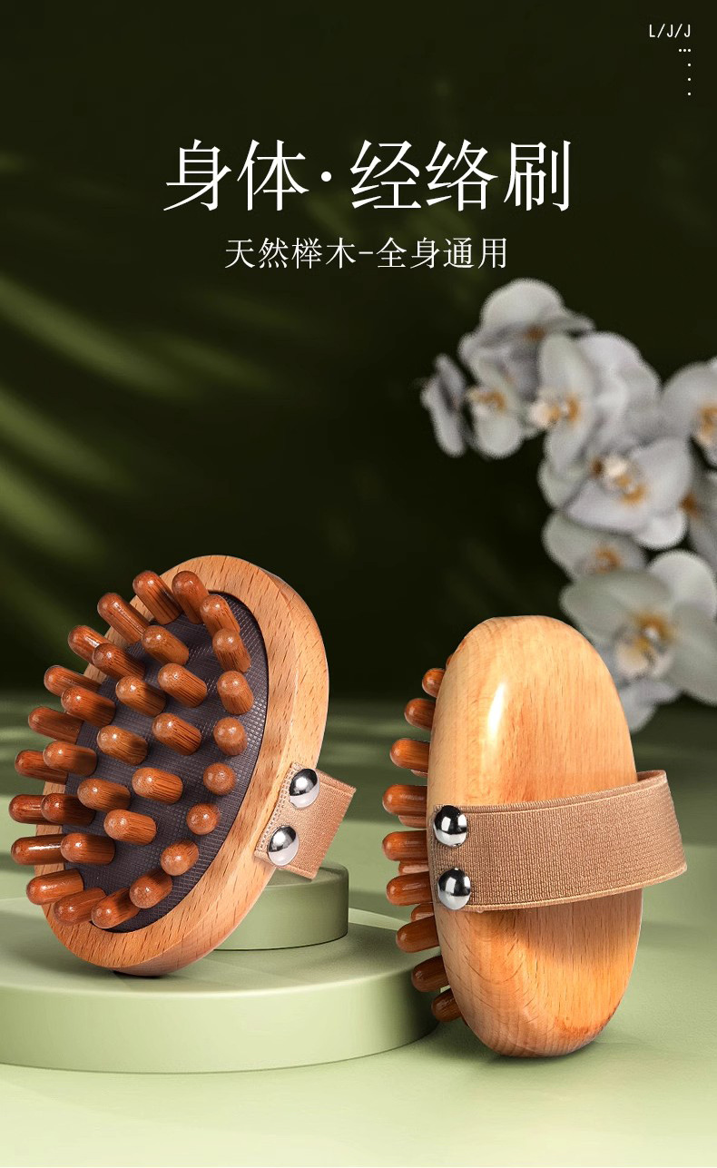 29 teeth brass meridian brush [rosewood/cylinder] + essential oil + acupoint map