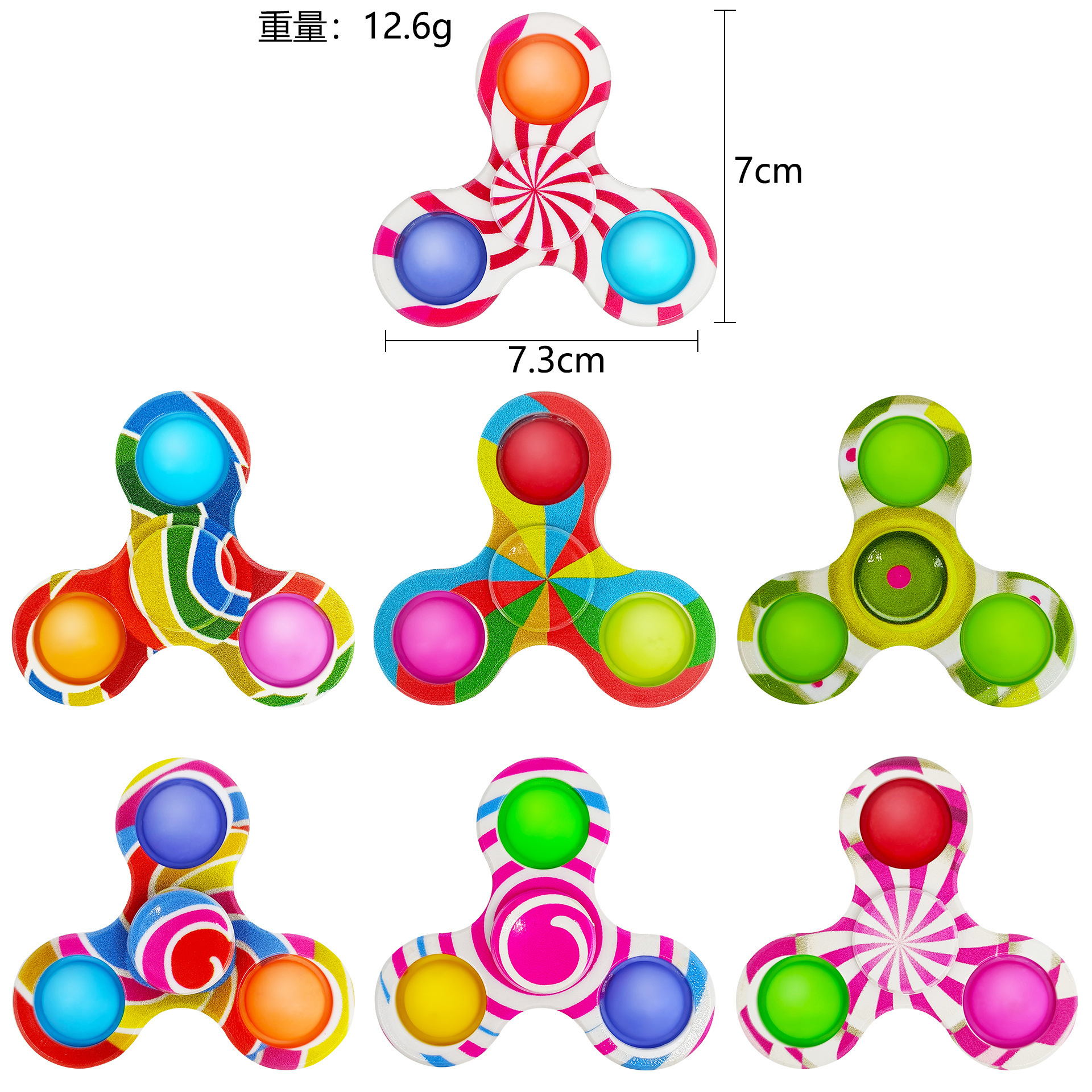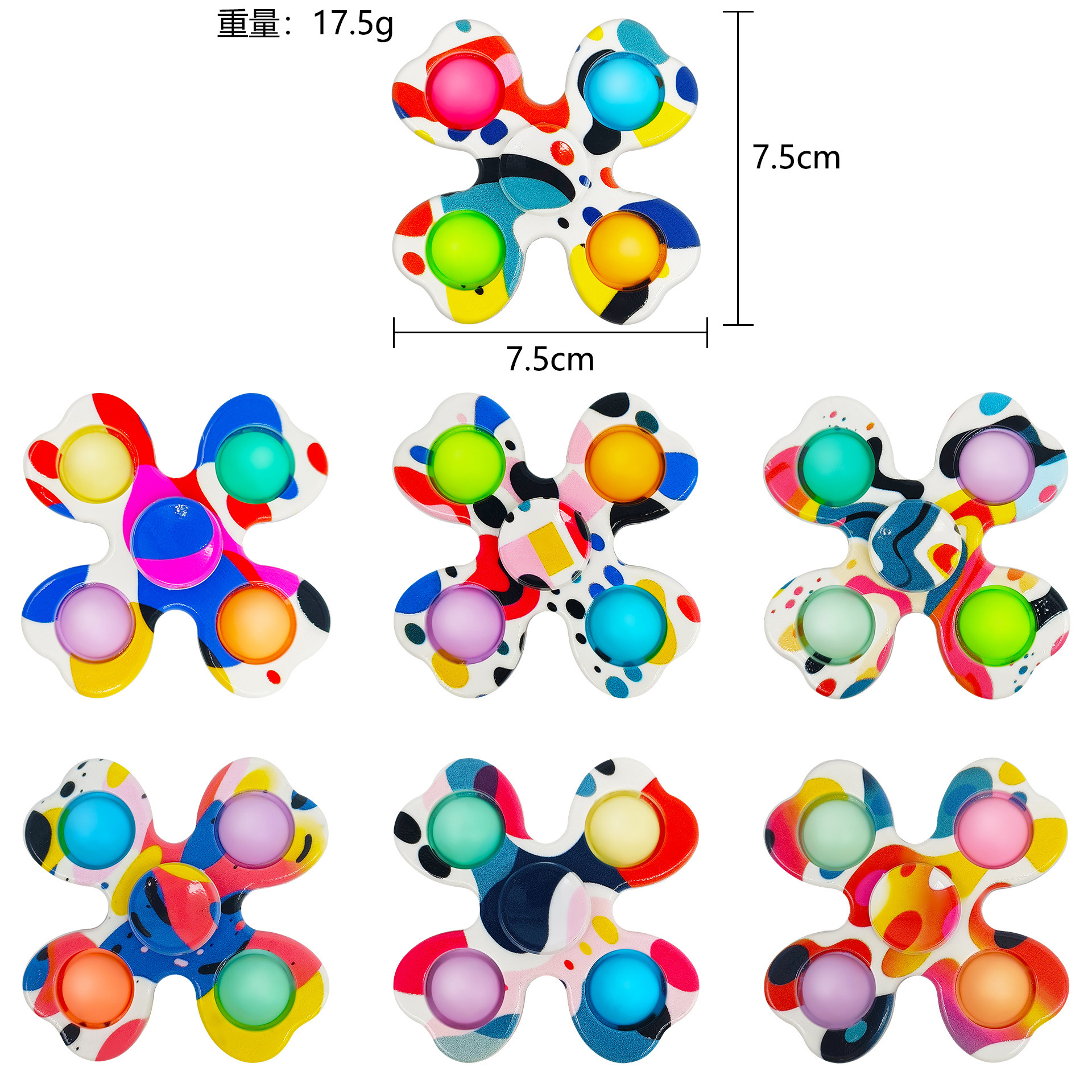 six-finger round printed gyro, mixed color 19.8g