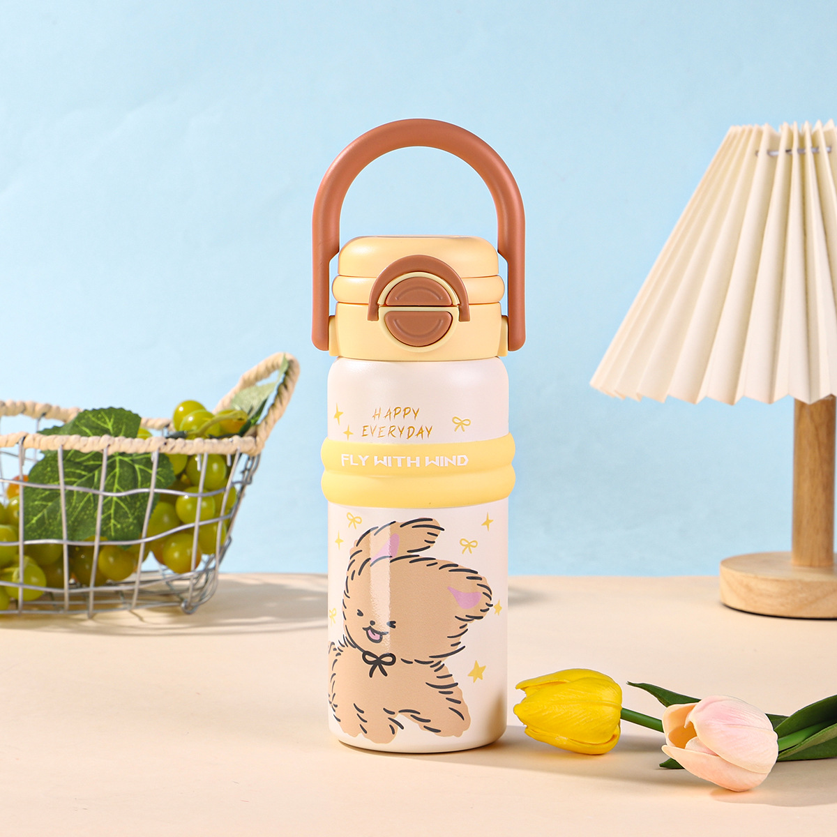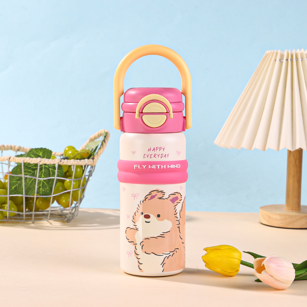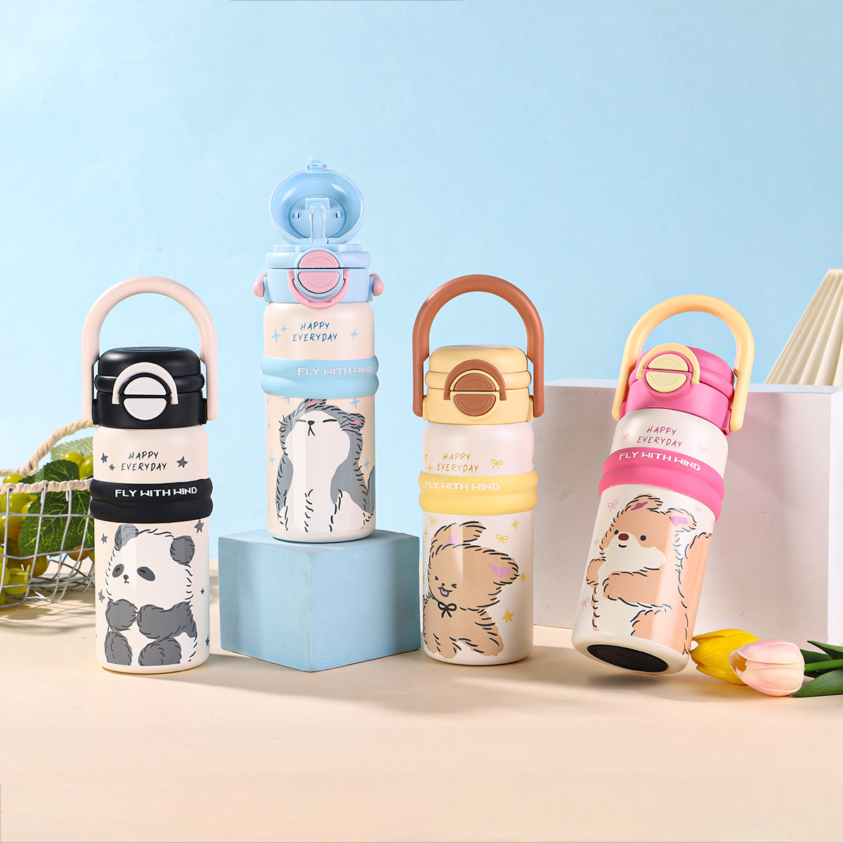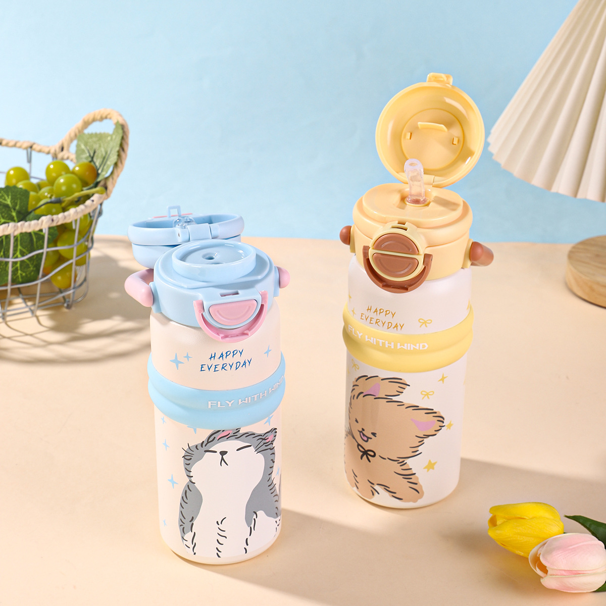 new 316 stainless steel vacuum cup cute fashion portable children's water cup large capacity cartoon double drink cup with straw
