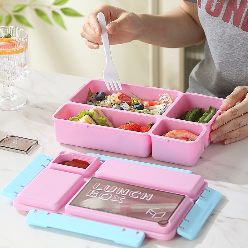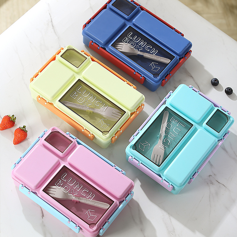 cross-border grid large capacity lunch box primary school student microwaveable heating office worker with rice lunch box with tableware