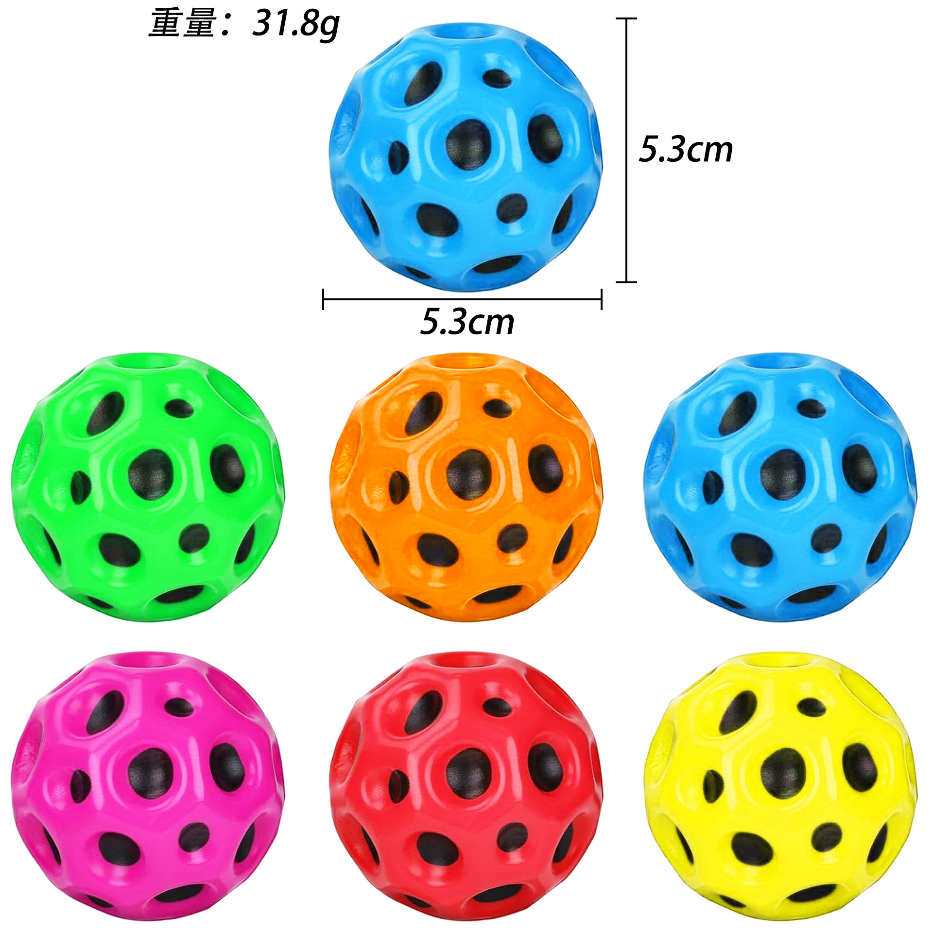 5.3cm hole elastic ball, mixed color 31.8g