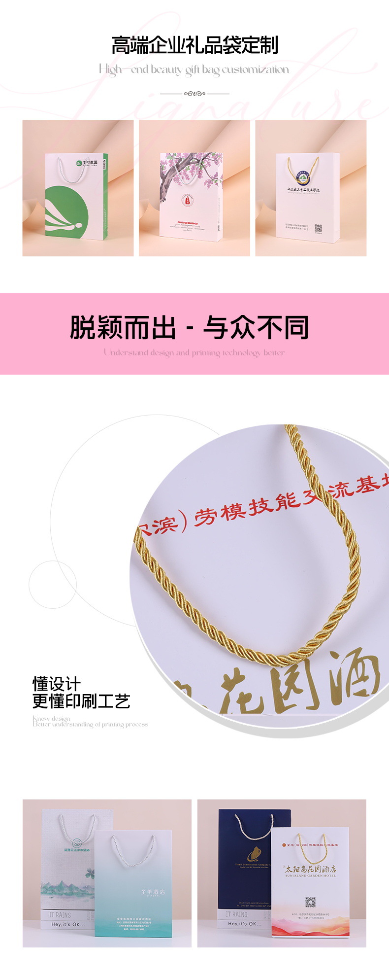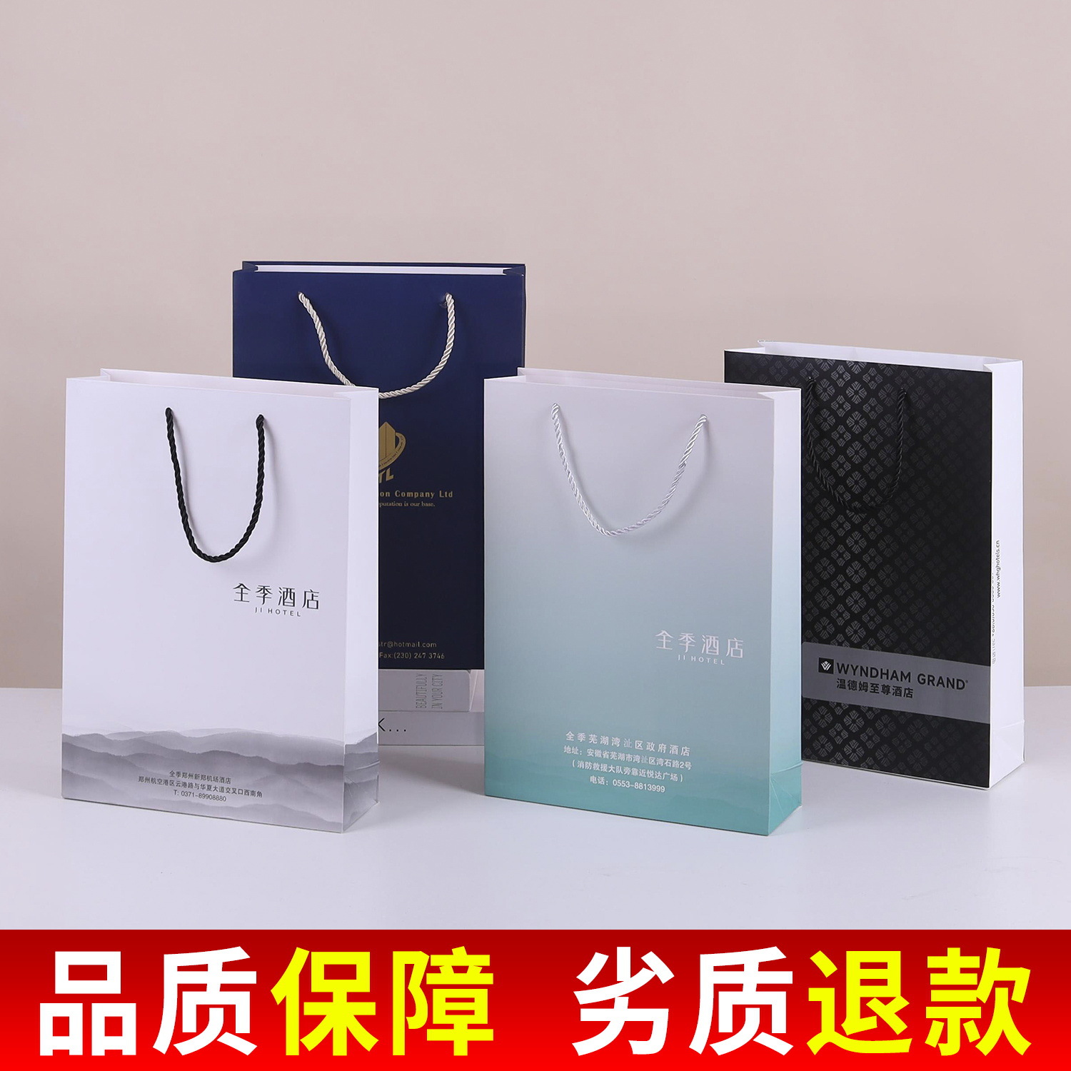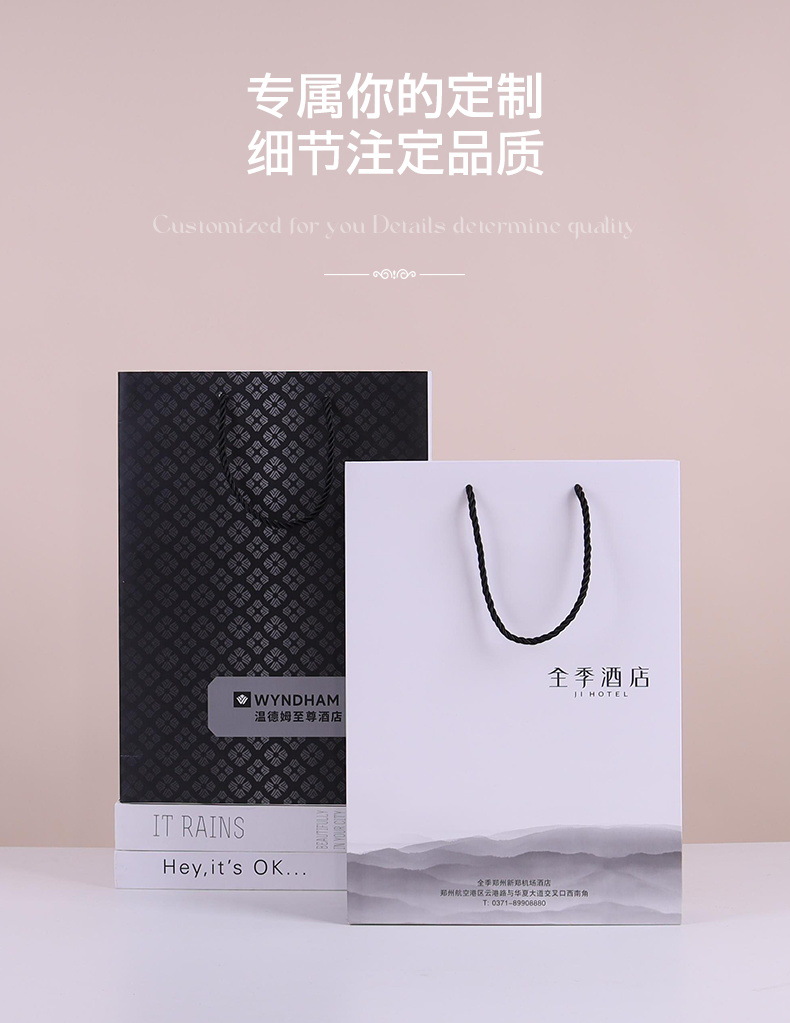 chain hotel portable paper bag custom logo hotel brand promotion b & b advertising gift bag custom