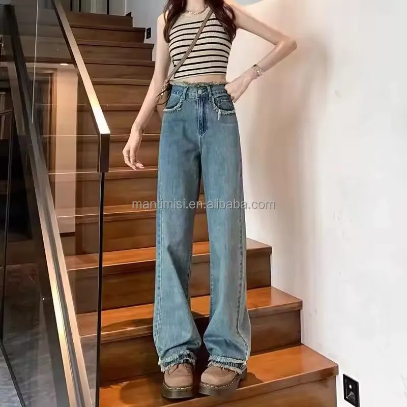 Womens Jeans Stretchy Casual Boyfriend Wide Leg Washed Sexy Baggy Denim Pants for Women Trendy
