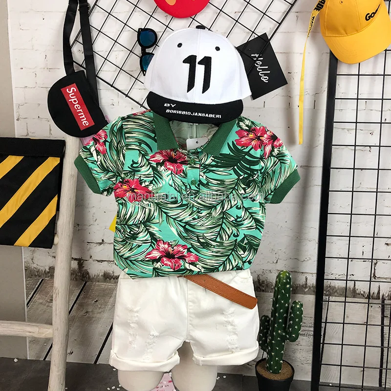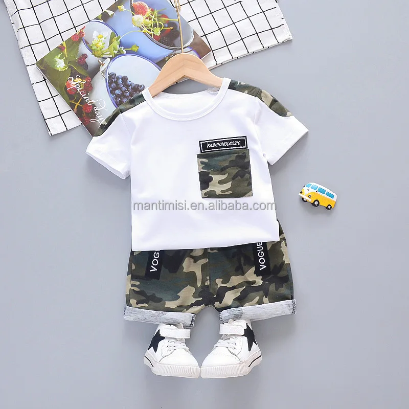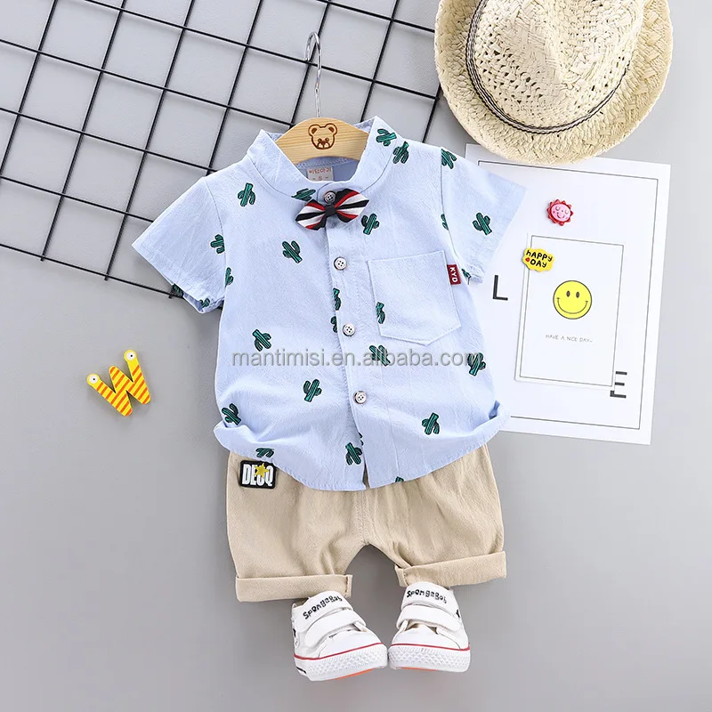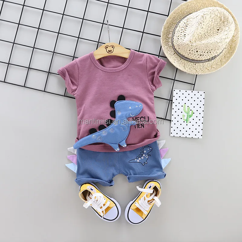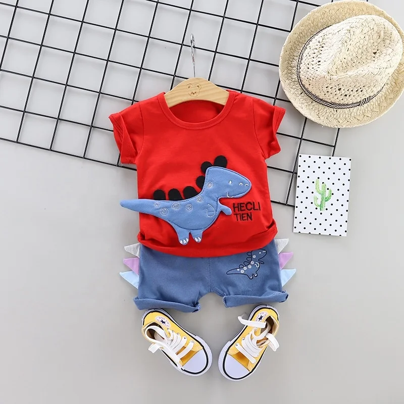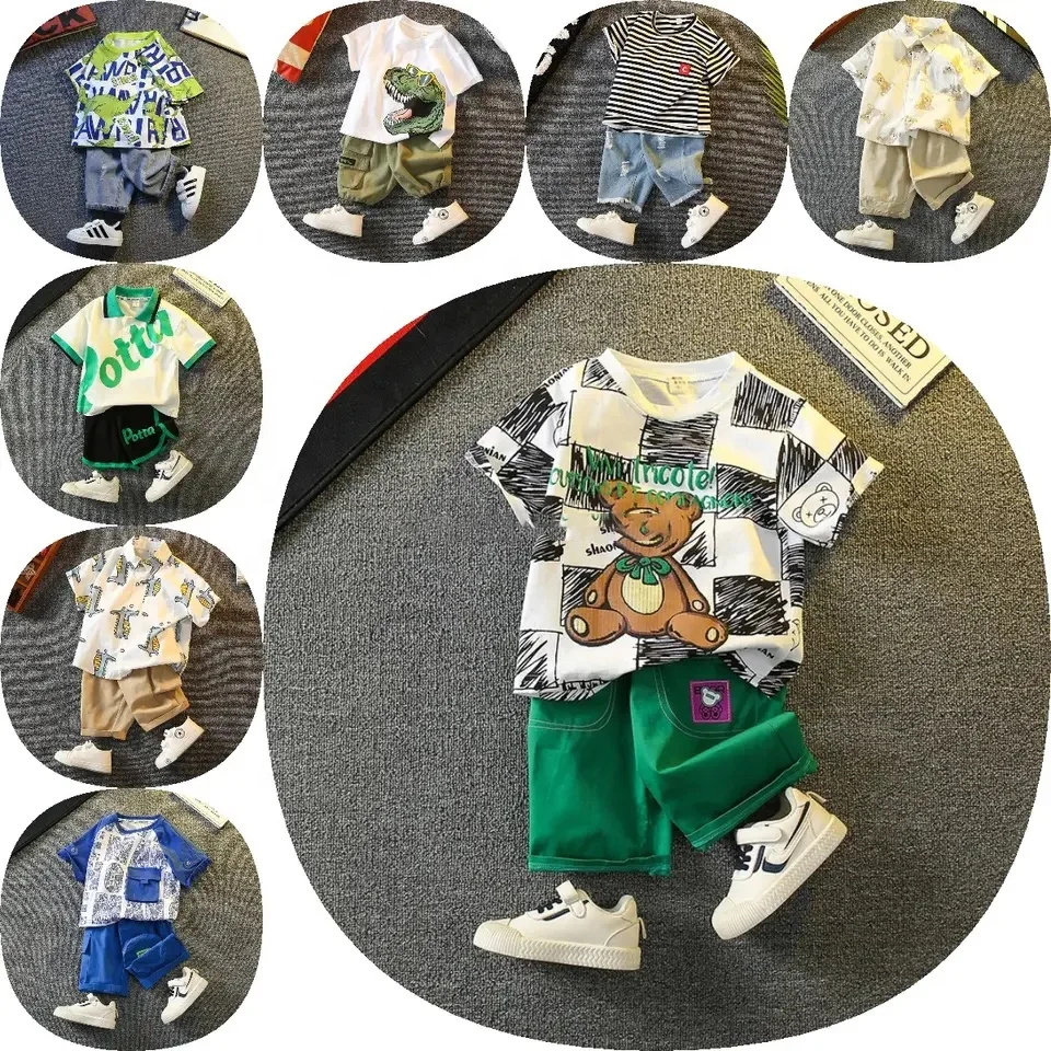 Boys Summer Outfits Kids Short Sleeve T-shirt and Shorts Set Cartoon Print Clothing Sets