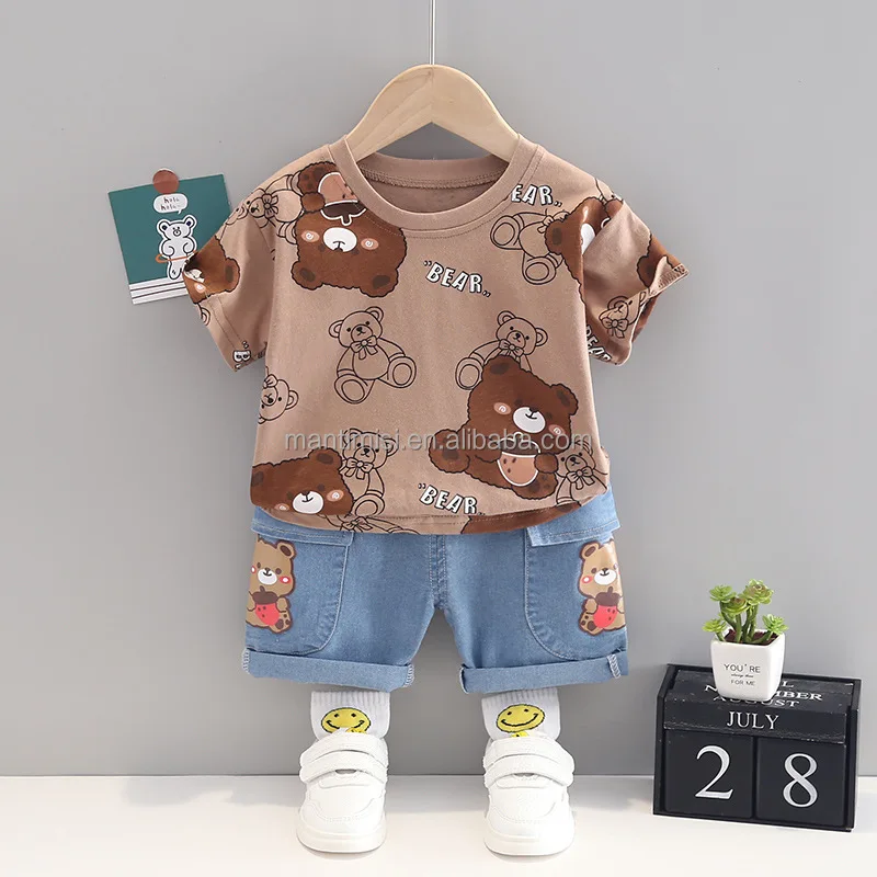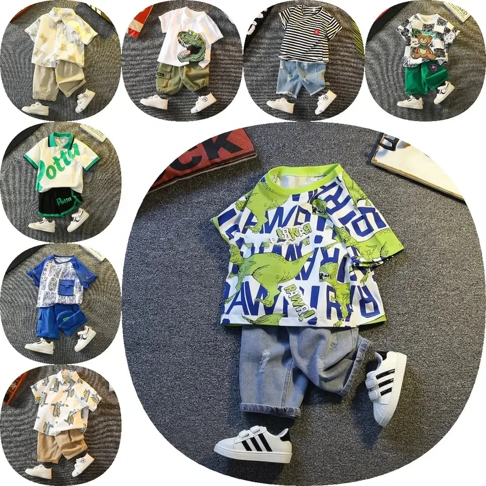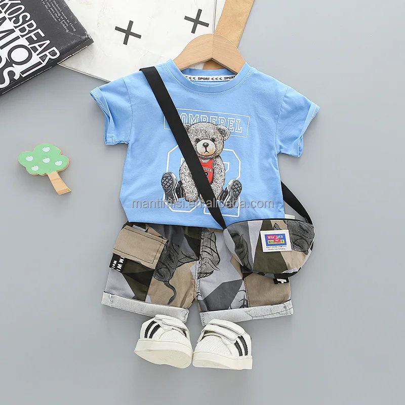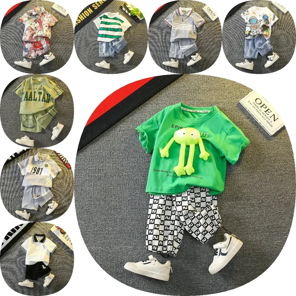 Boys Short Sleeve Cartoon Prints T Shirt Tops Shorts Child Kids Gentleman Outfits Cute Boy Clothes