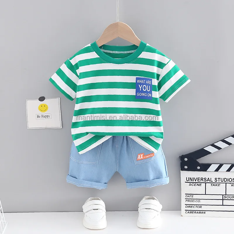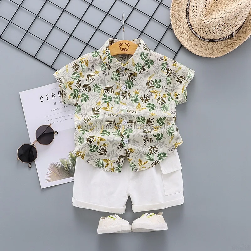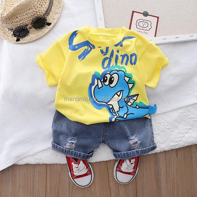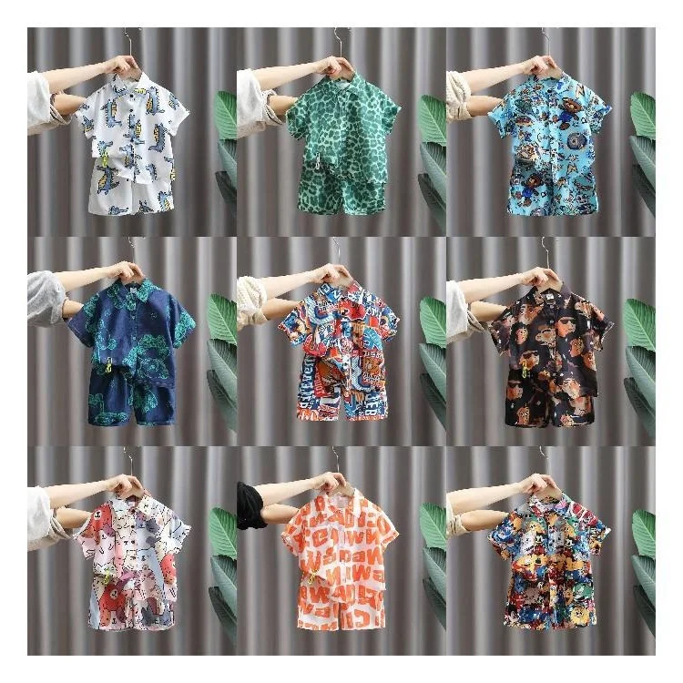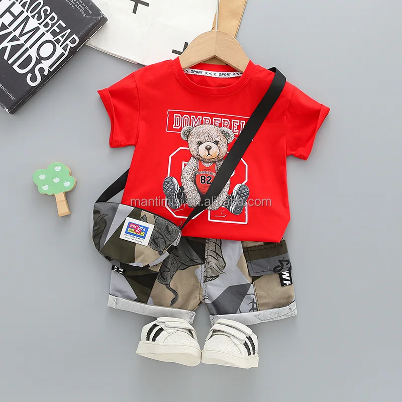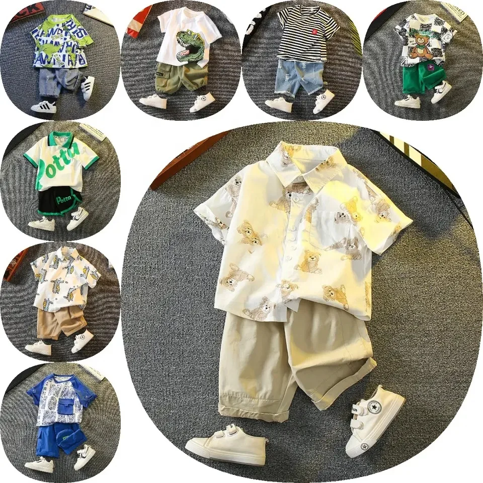 Boys Short Sleeve Cartoon Prints T Shirt Tops Shorts Child Kids Gentleman Outfits Cute Boy Clothes