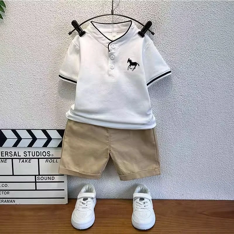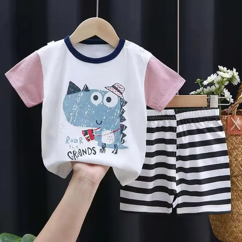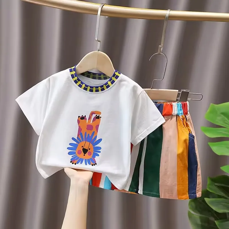 1.This product, manufactured by Jingyu and designed for both boys and girls, features a stylish animal pattern. It exudes a casual charm with its Baby Sports Two-Piece Shorts Set, suitable for children during the summer season.