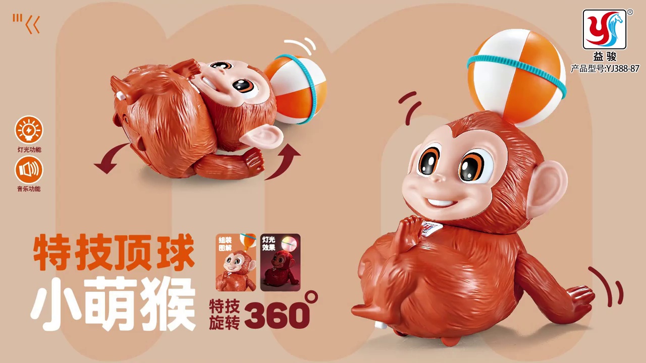 children's special effects pop and tip rotating cute monkey 360-degree rotating light music toy