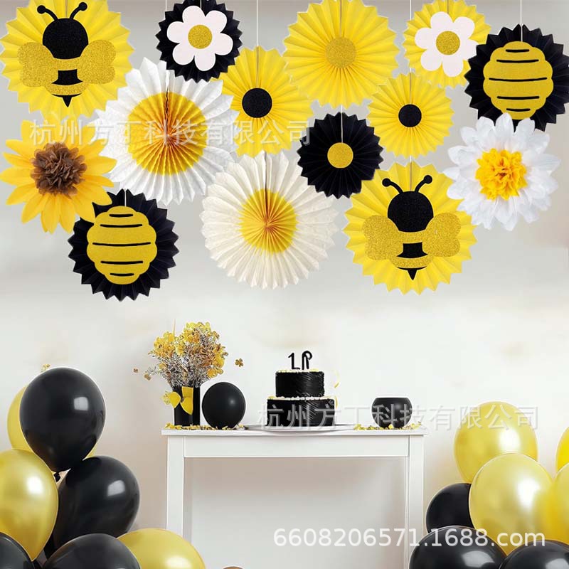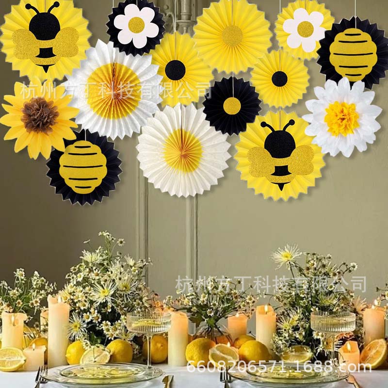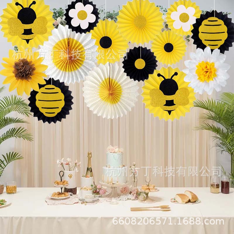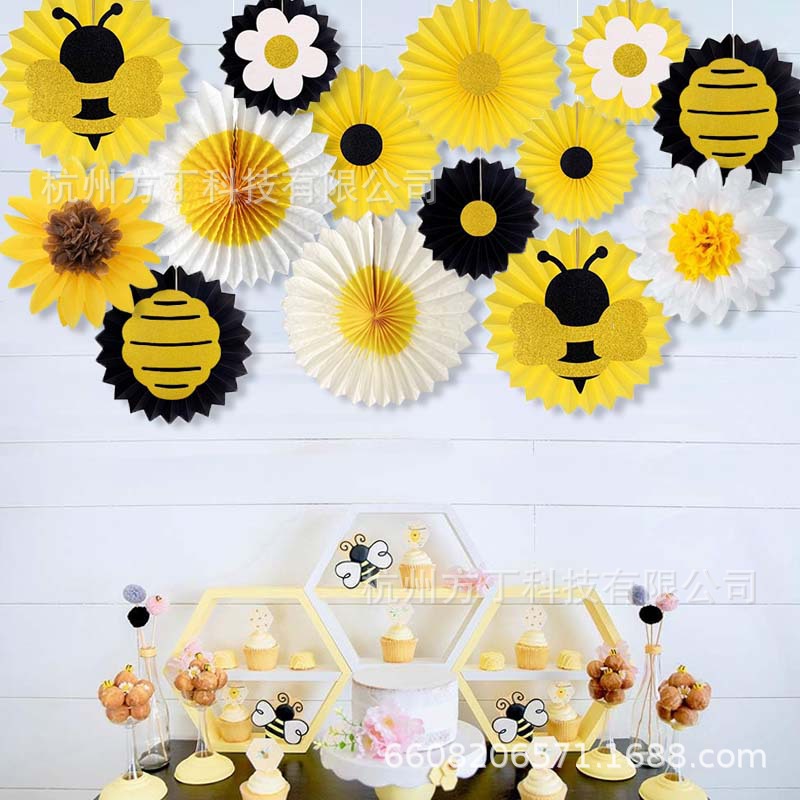 14pcs bee paper fan suit