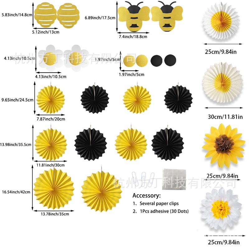| Material | Paper | Size | 14pcs Bee Paper Fan Set |