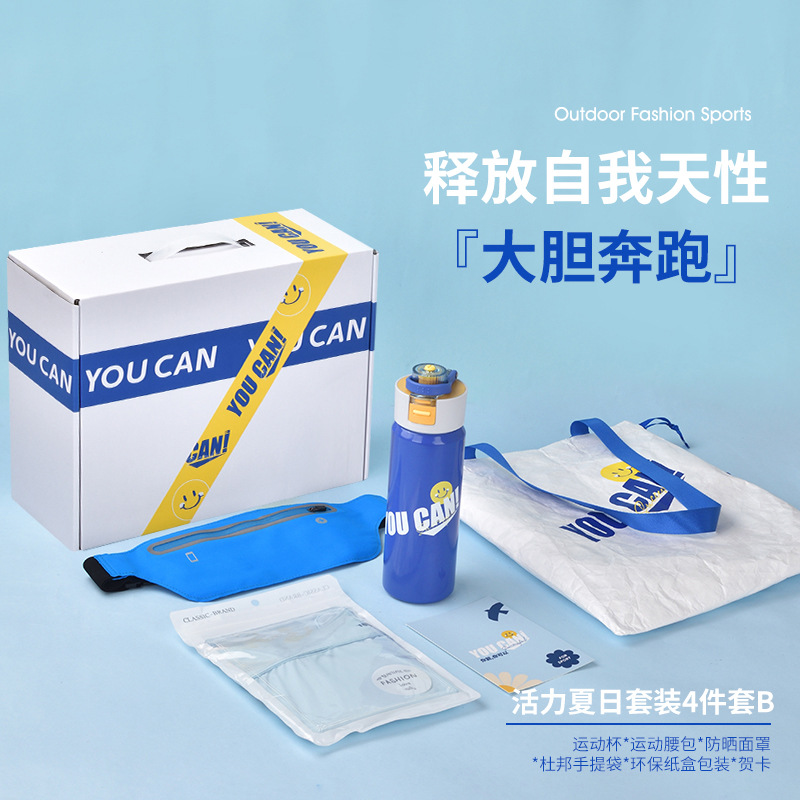 blue sports cup + waist bag + mask + handbag + gift box + greeting card