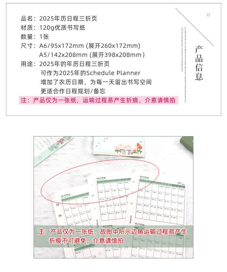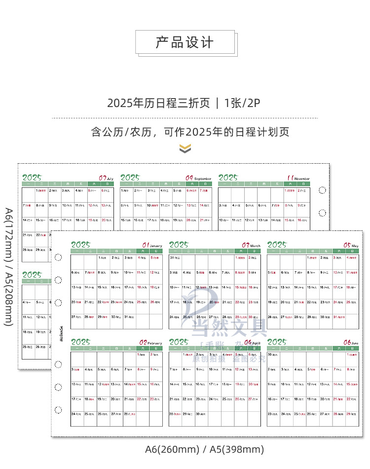 2025 calendar three fold a5