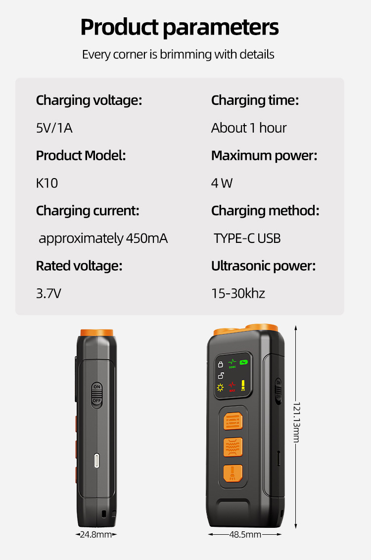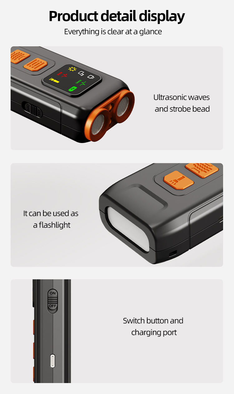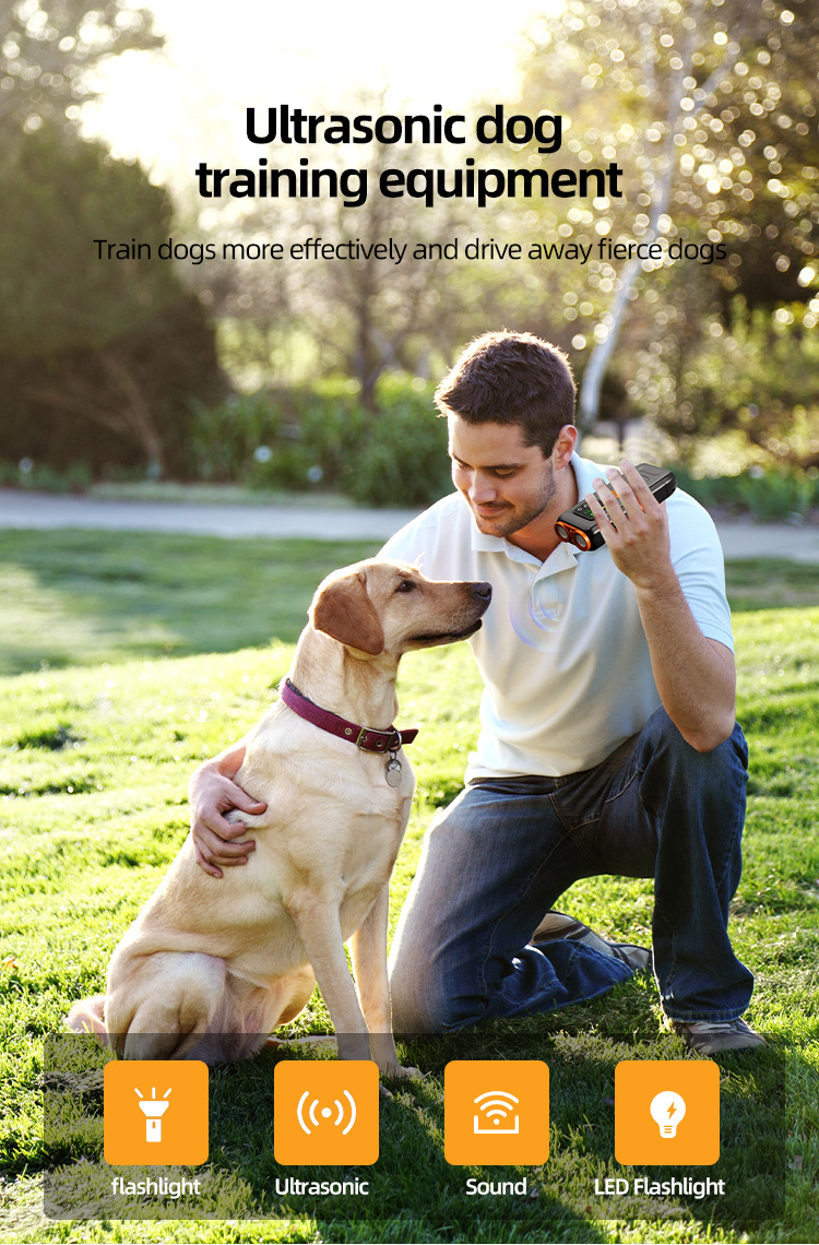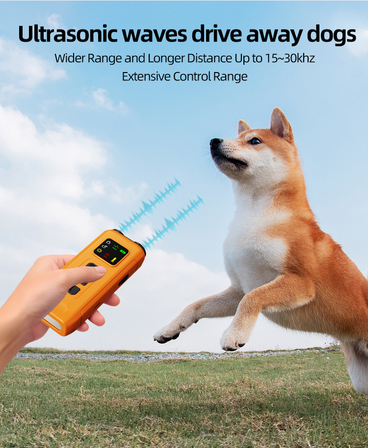 This product uses ultrasonic sound to drive away pets, causing no physical harm to them. It is used as a training device for daily pet barking or biting. The appearance is elegant, the operation is simple, and it is convenient to carry. The three-core high-power ultrasonic, high-frequency ultrasonic, and high-frequency sound waves stimulate the hearing of the bad dog, making it feel afraid.