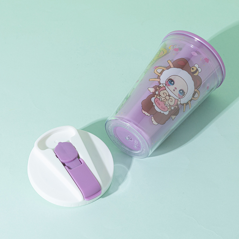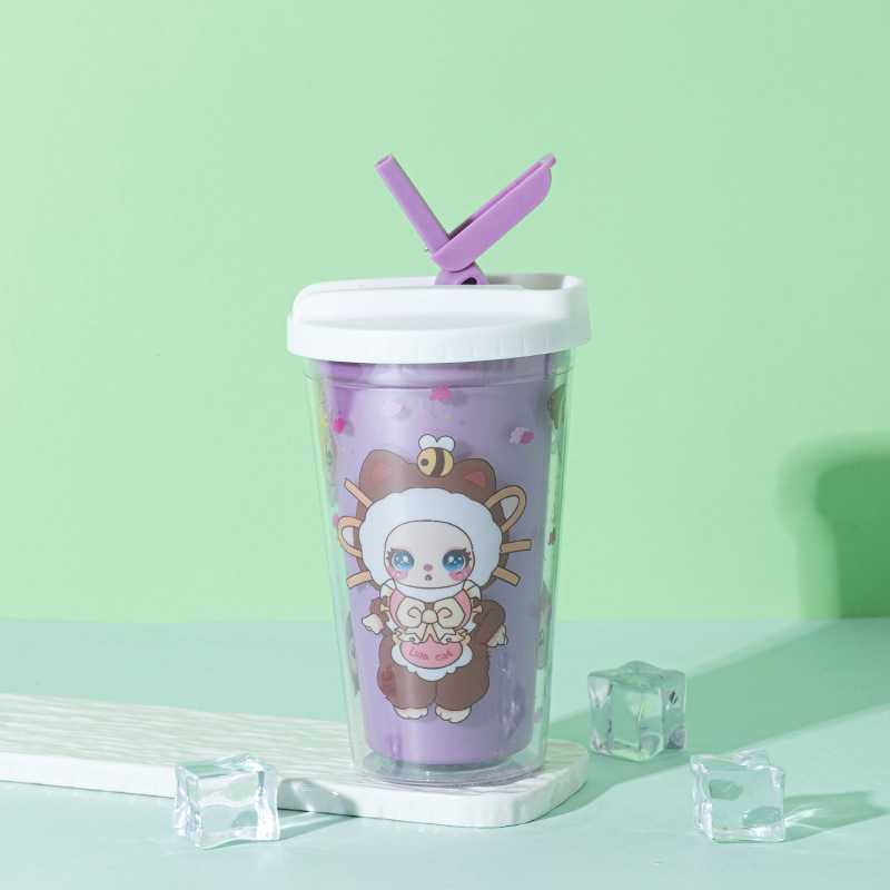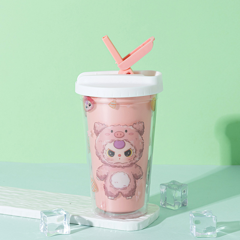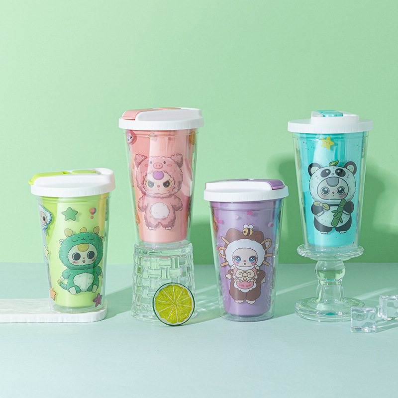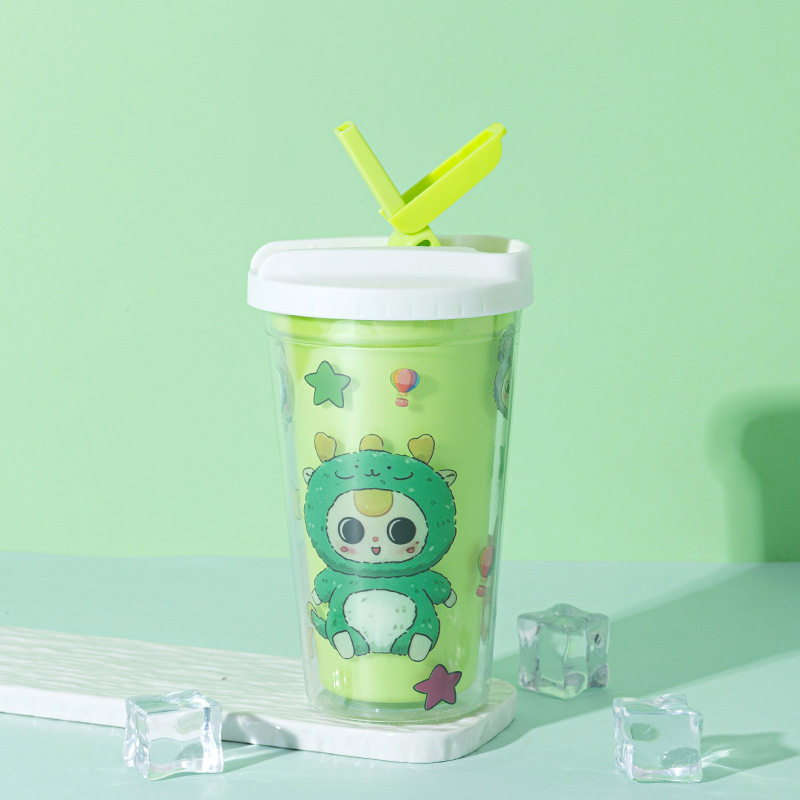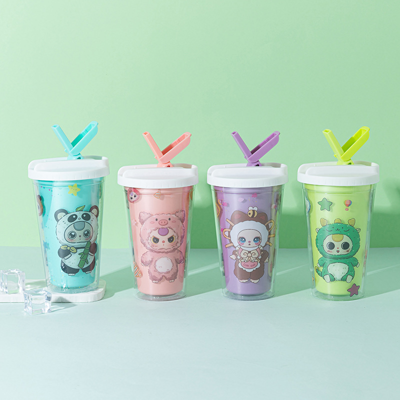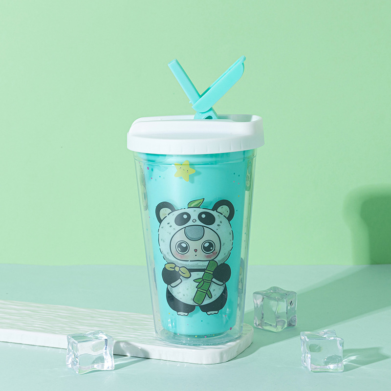 foreign trade new baby three-year-old water cup wholesale creative high-looking cartoon straw cup double-layer summer crushed ice cup