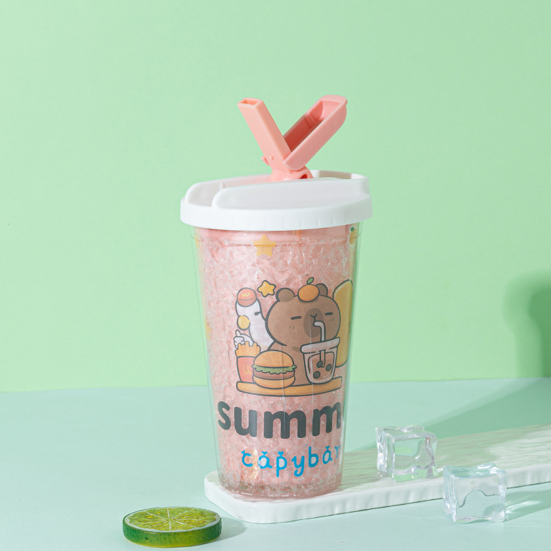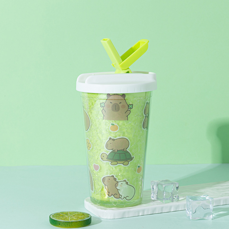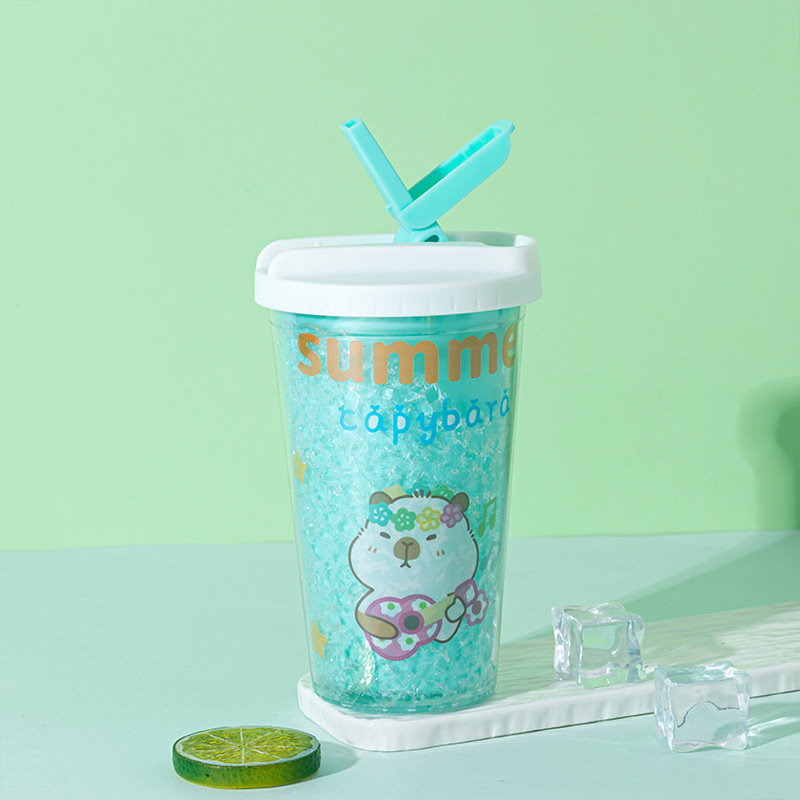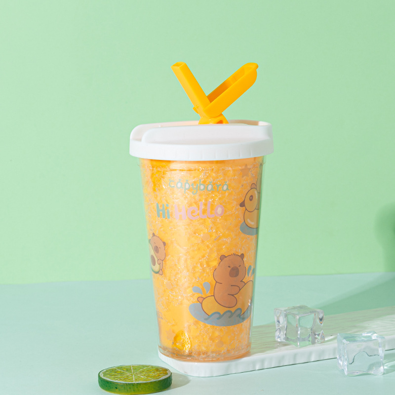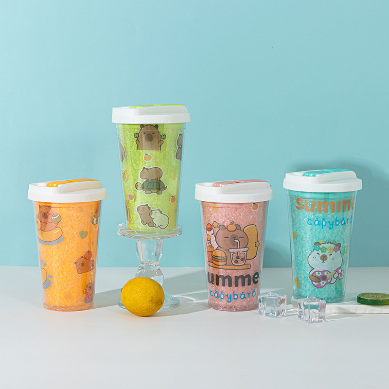 cross-border hot selling kappabala water cup wholesale creative high-looking cartoon children's straw cup double layer summer ice glass