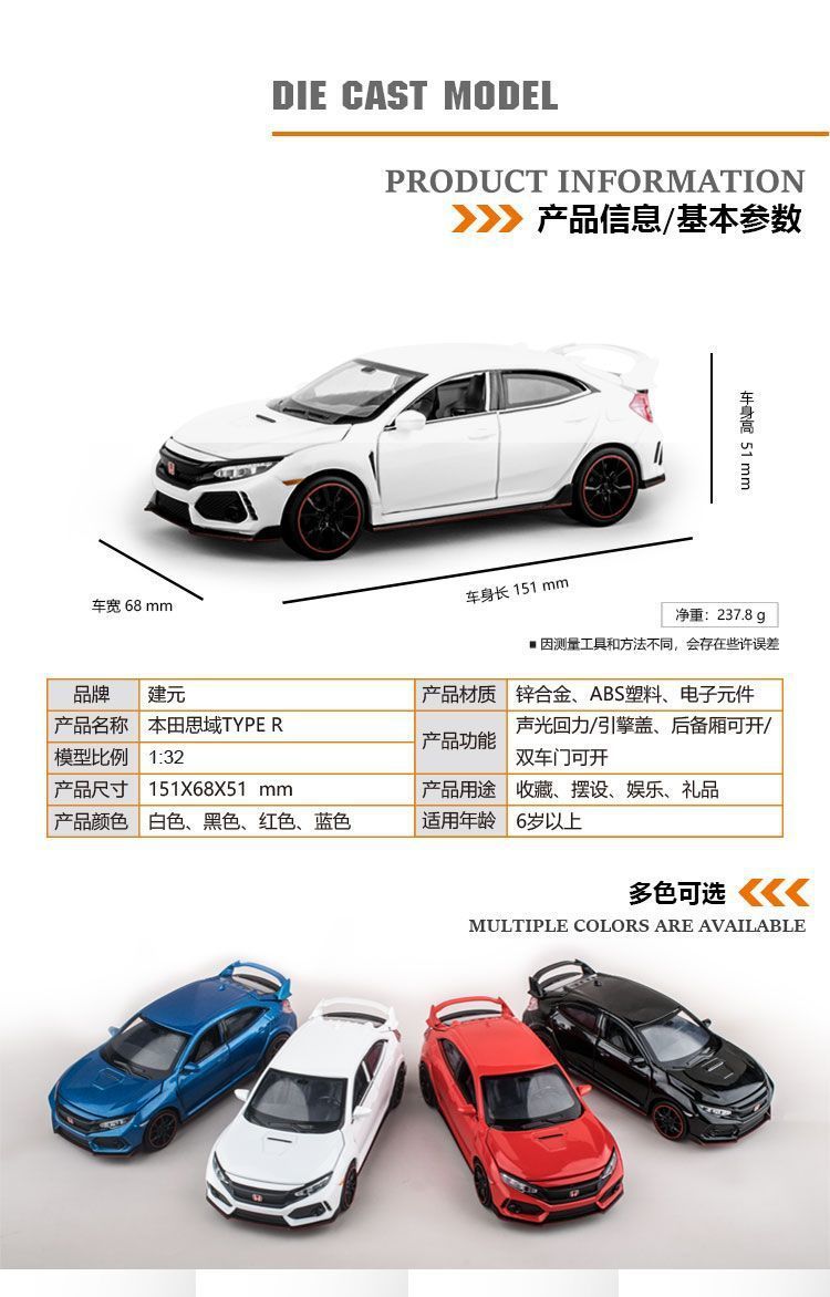 1:32 civic white boxed