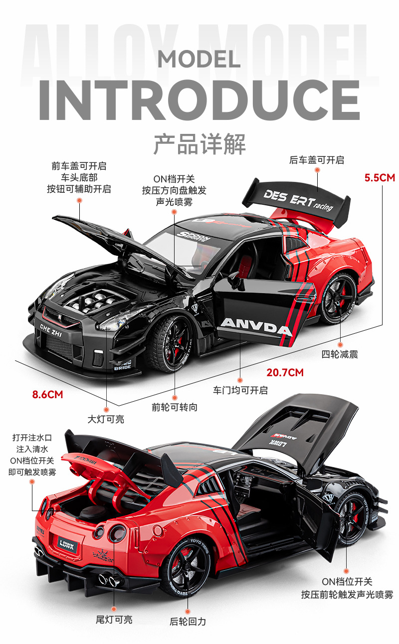 1:24 nissan gtr track edition spray-black and red