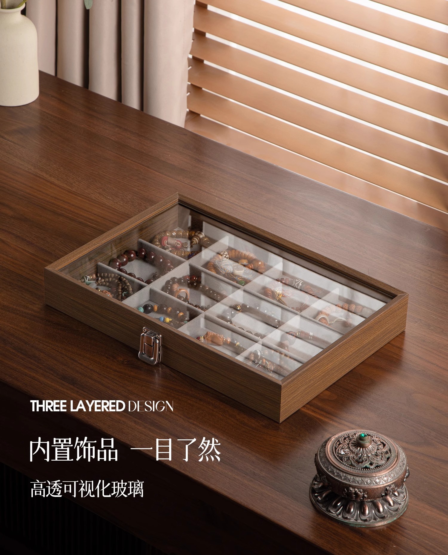 grid 10.5 * 11cm-the pattern of walnut [6 grid-exquisite leather]]