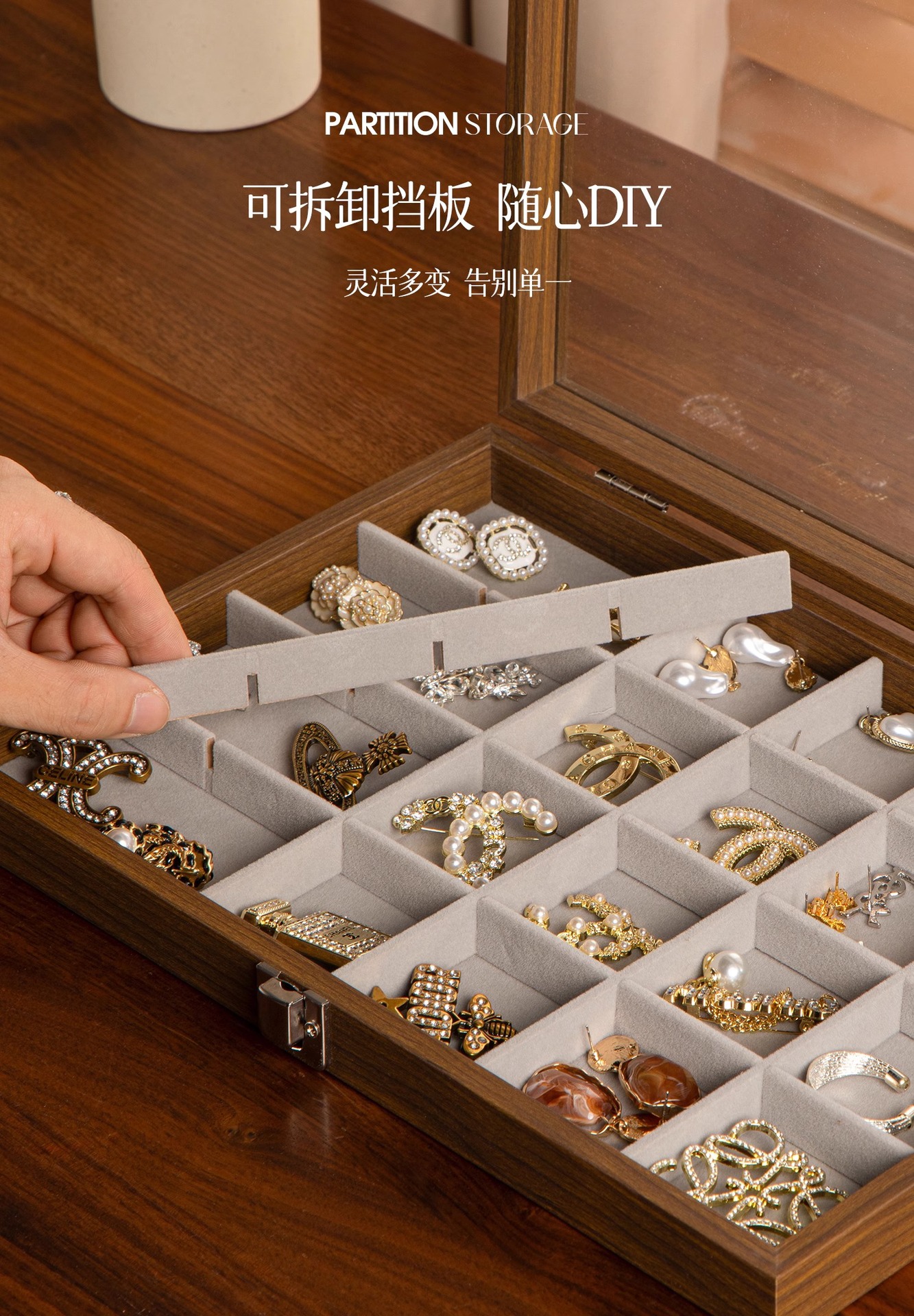 grid 5 * 5cm-the pattern of walnut [24 grid-gray flannel]]