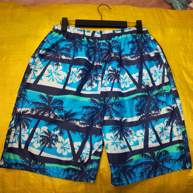 Flower-patterned beach shorts for men, 5-finger casual pants, with a 98-gram peach skin velvet fabric.