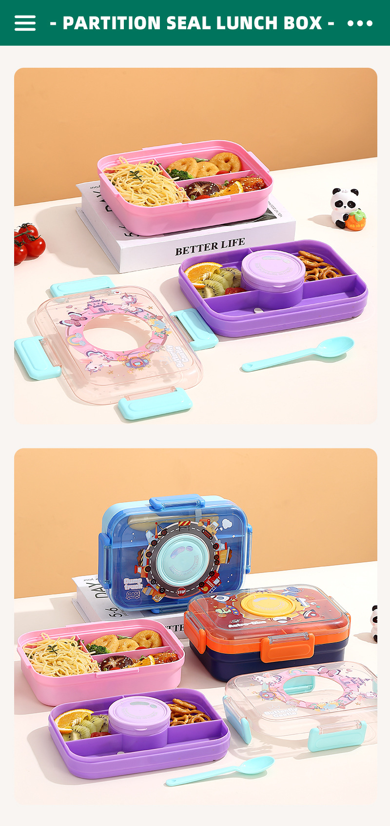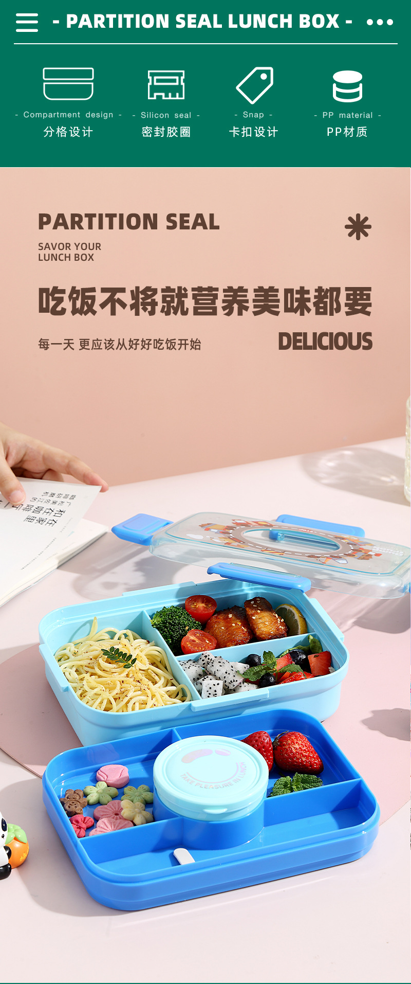 student lunch box portable tableware with canteen lunch box for primary school students plastic lunch box factory direct supply