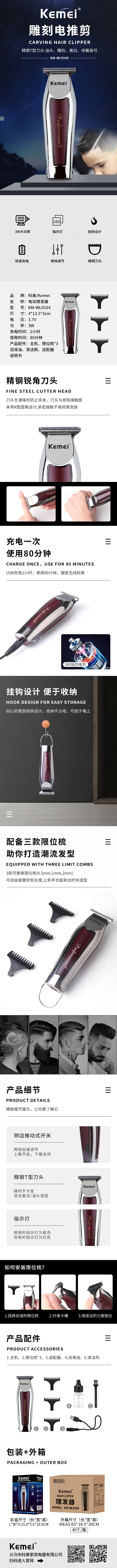 cross-border factory direct supply electric clipper komei km-wl9164 electric hair clipper electric clipper hair scissors