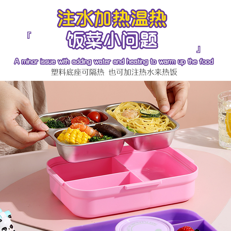 stainless steel insulated lunch box children's divided lunch box student with cover lunch box with stainless steel spoon chopsticks sauce cup