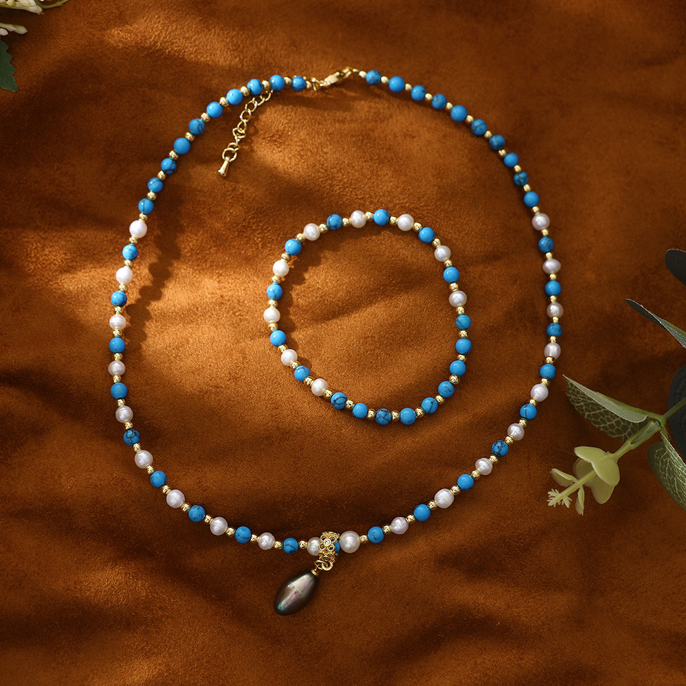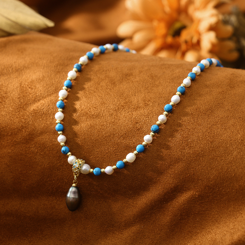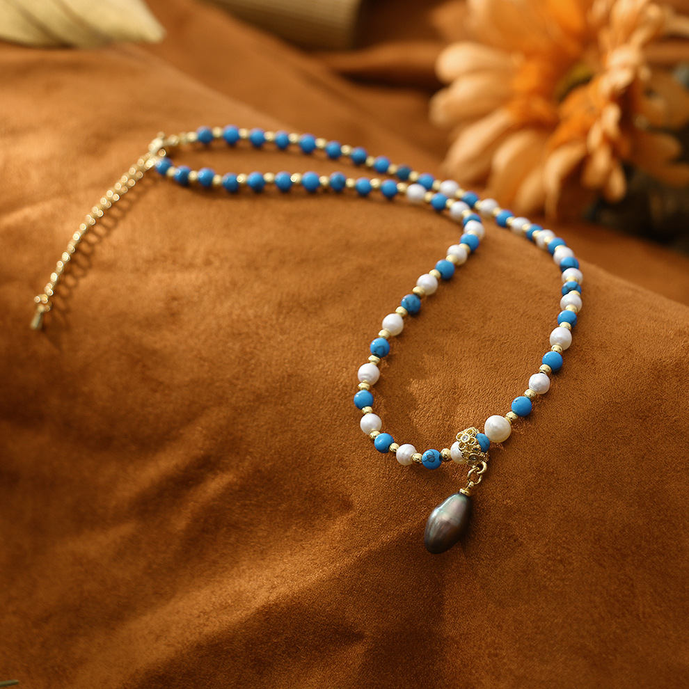 black pearl pendant turquoise pearl necklace