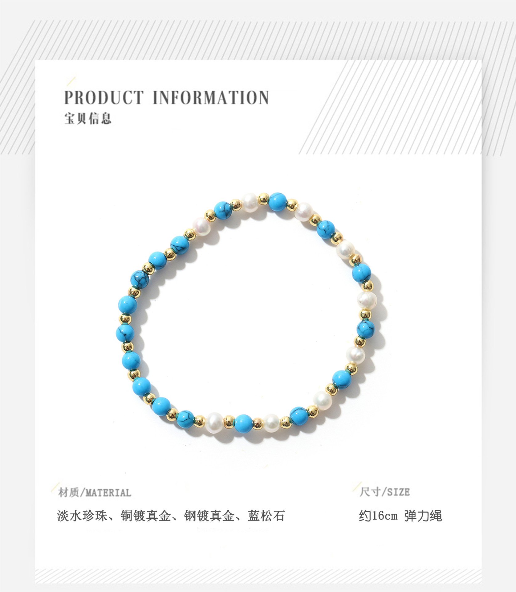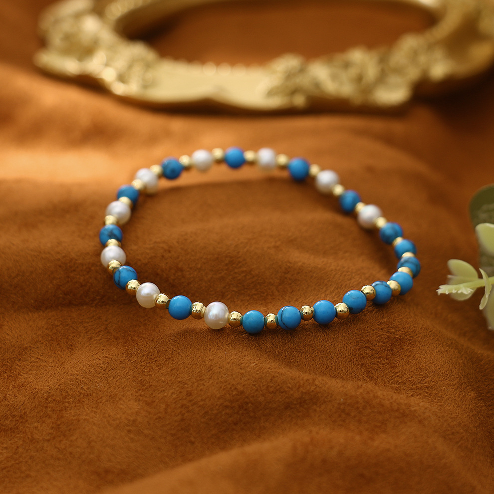 turquoise elastic string pearl bracelet