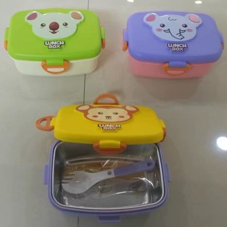 japanese style cute round cartoon animal lunch box stainless steel square student compartment lunch box children eating tableware