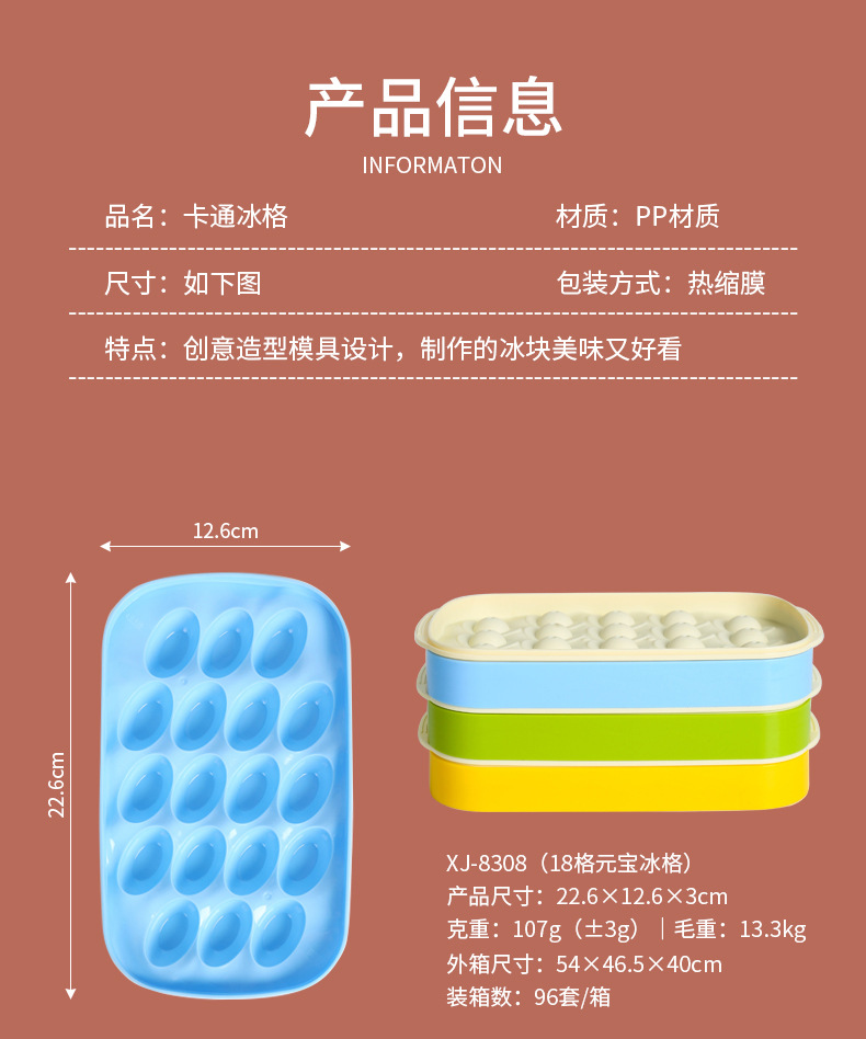 xiaojian ingot 8 grid ice tray 18 grid large square ice tray ice maker mold