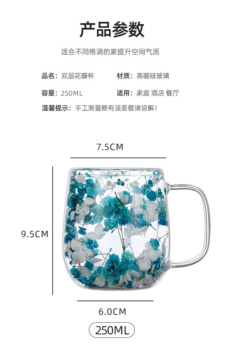 ins style new real flower and dried flower double layer high borosilicate glasses office bar home mark coffee cup