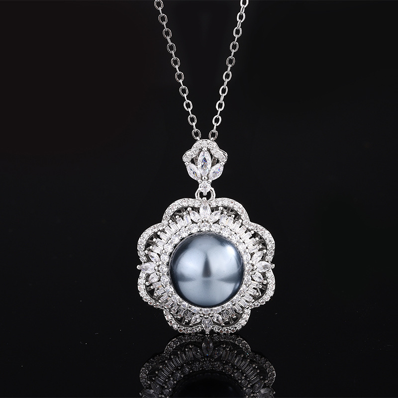 gray bead pendant with chain