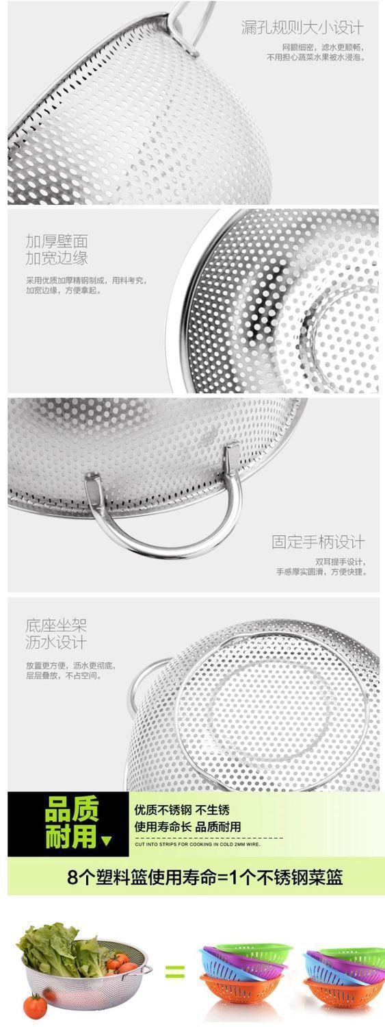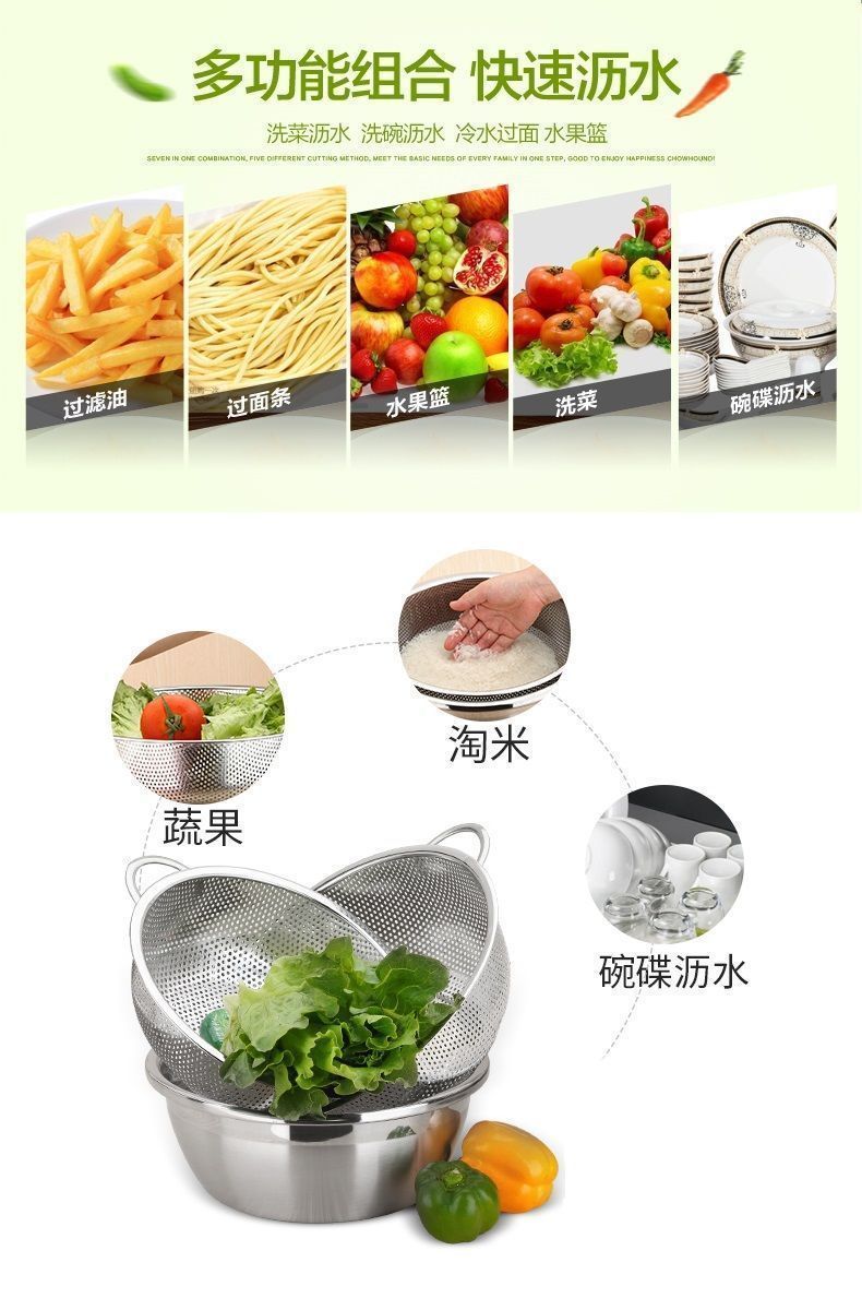 thickened stainless steel binaural dense hole basket washing vegetable basket rice rinsing sieve bowl strainer drain basket fruit basket fruit pot kitchen multi-purpose basket