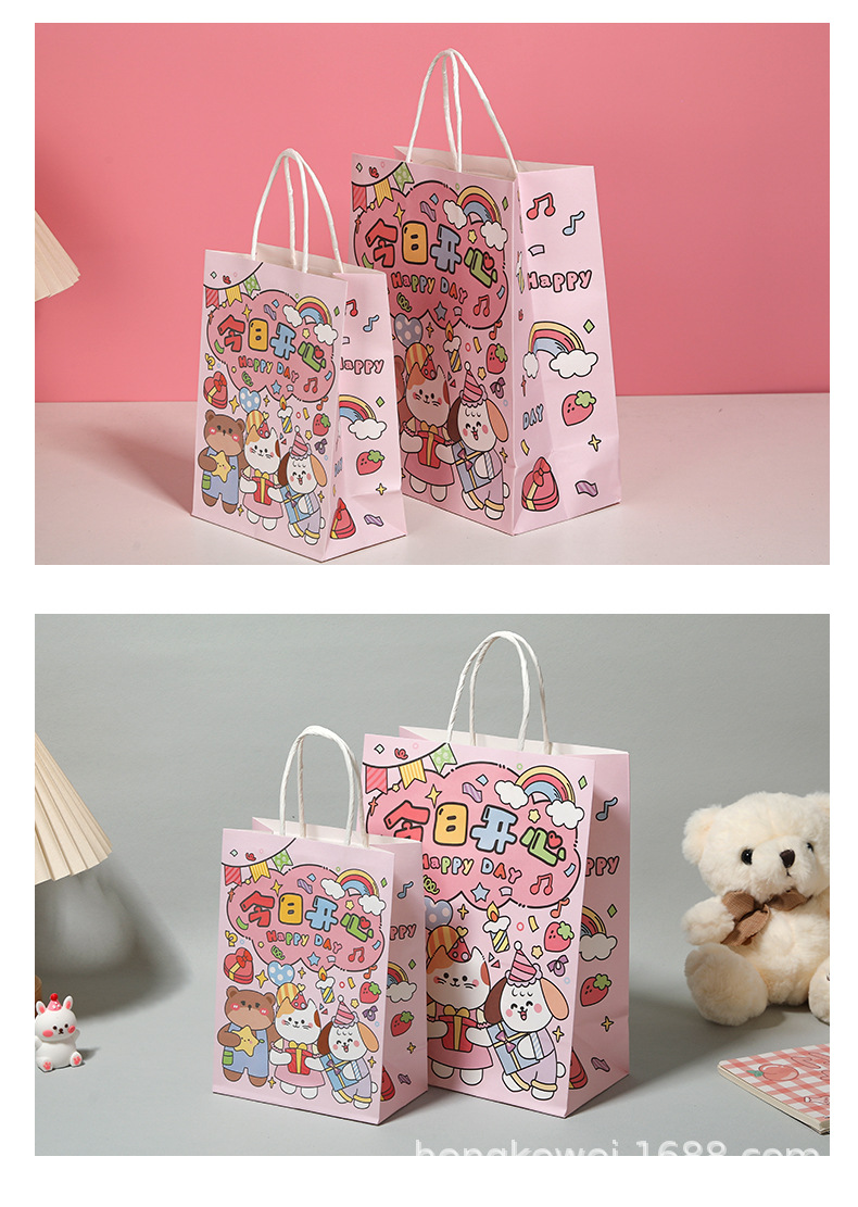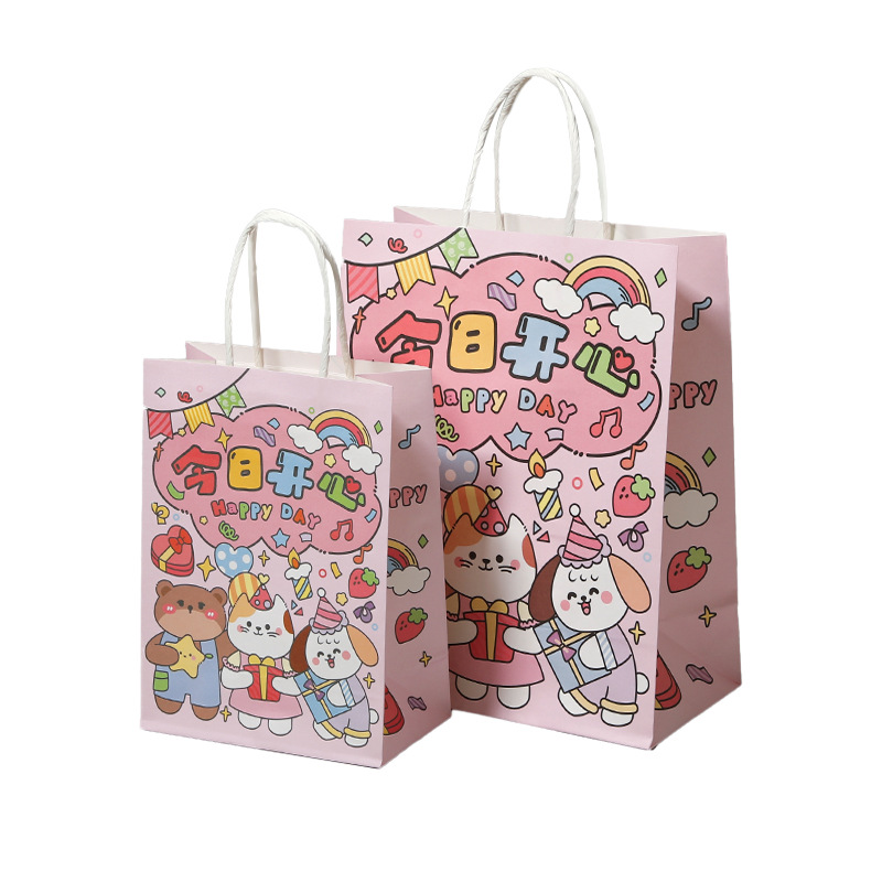 customized kraft paper bag handbag gift bag cute birthday gift hand gift baking milk tea takeaway packaging bag