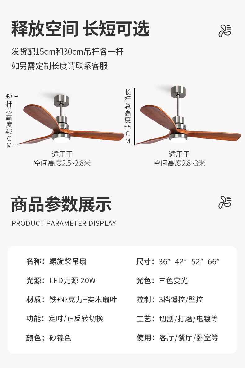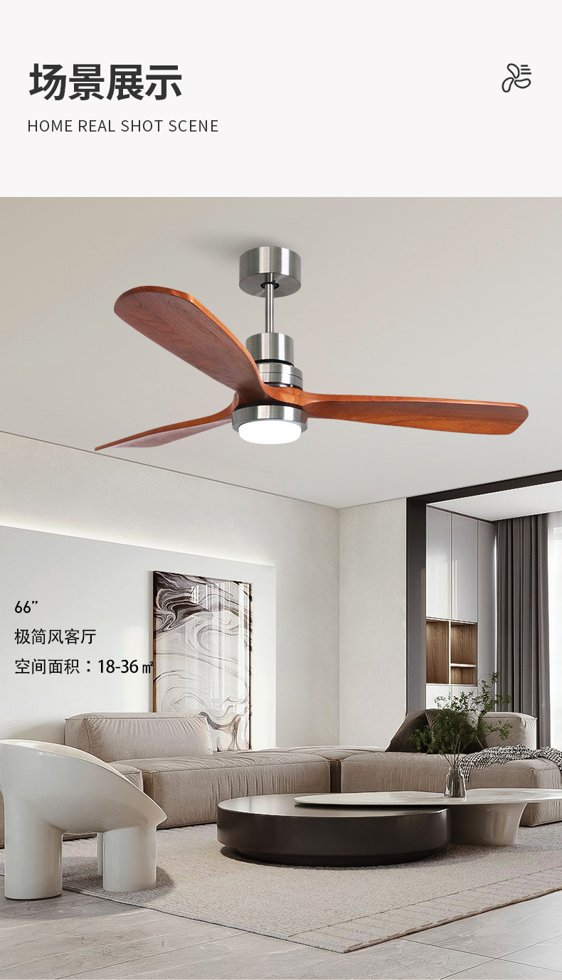 small the lamp disc-66 inch sand nickel color + walnut fan blade +20w three-color light + remote control